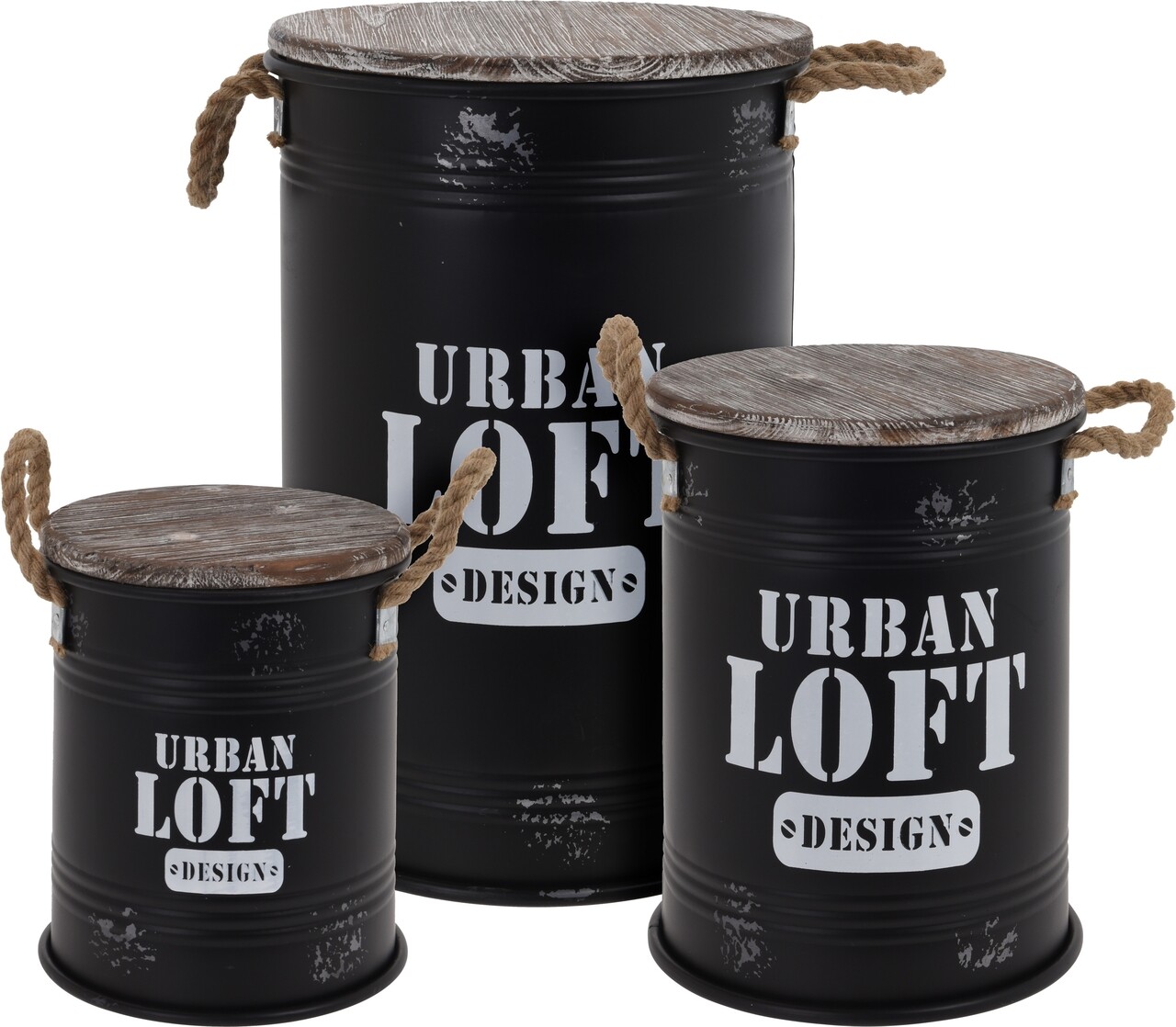 Set 3 recipiente pentru depozitare Urban Loft, zinc, negru