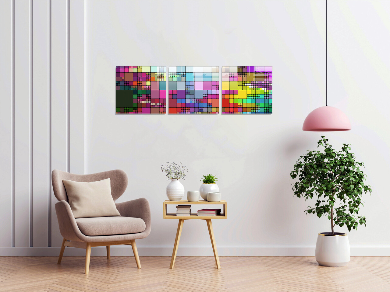 Set 3 tablouri decorative, 1404, Sticla temperata, 60 x 60 cm, 3 piese, Multicolor