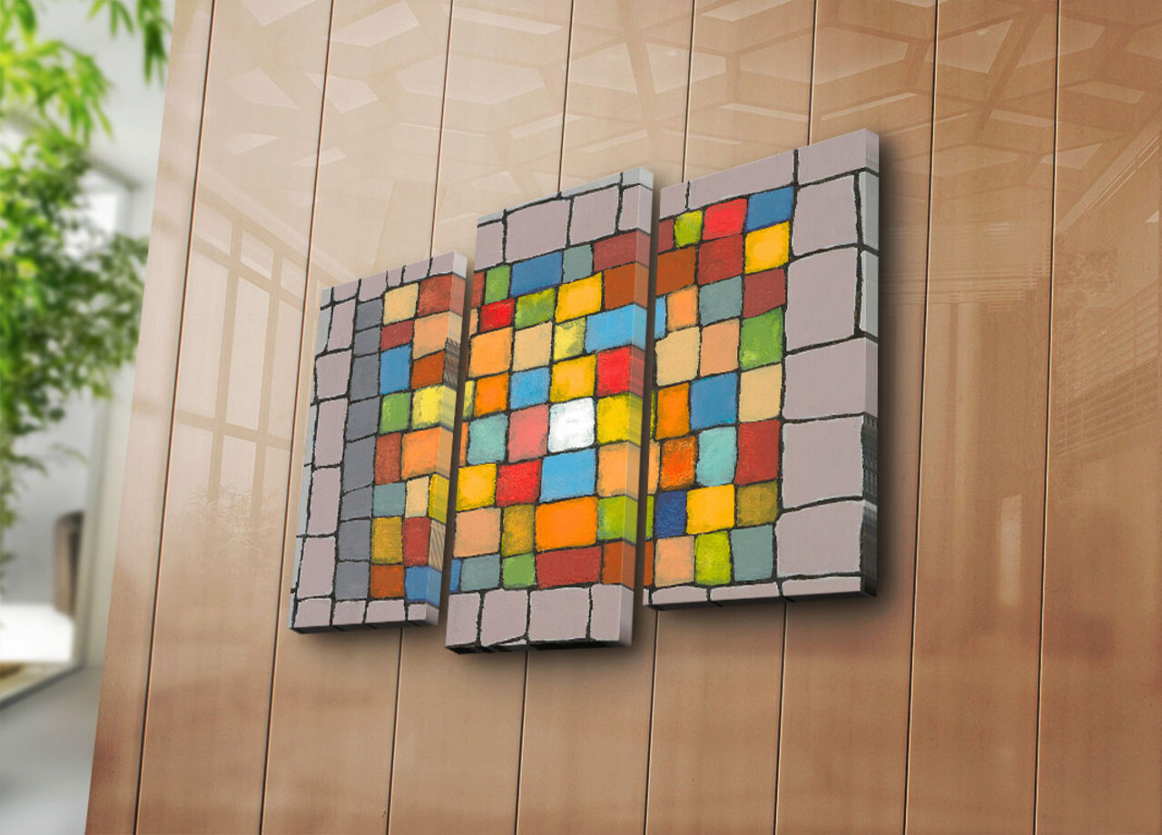 Set 3 tablouri decorative, 3PATK-95, Canvas, 20 x 39 cm, 2 piese, Multicolor