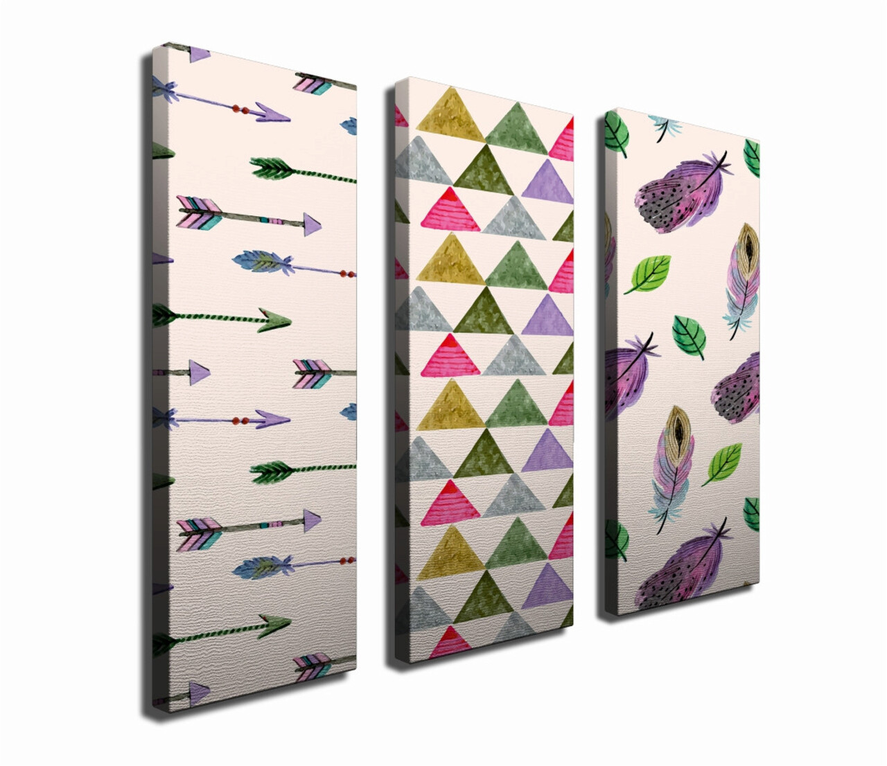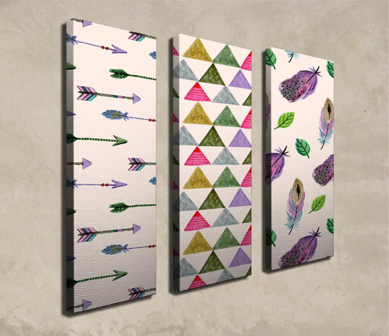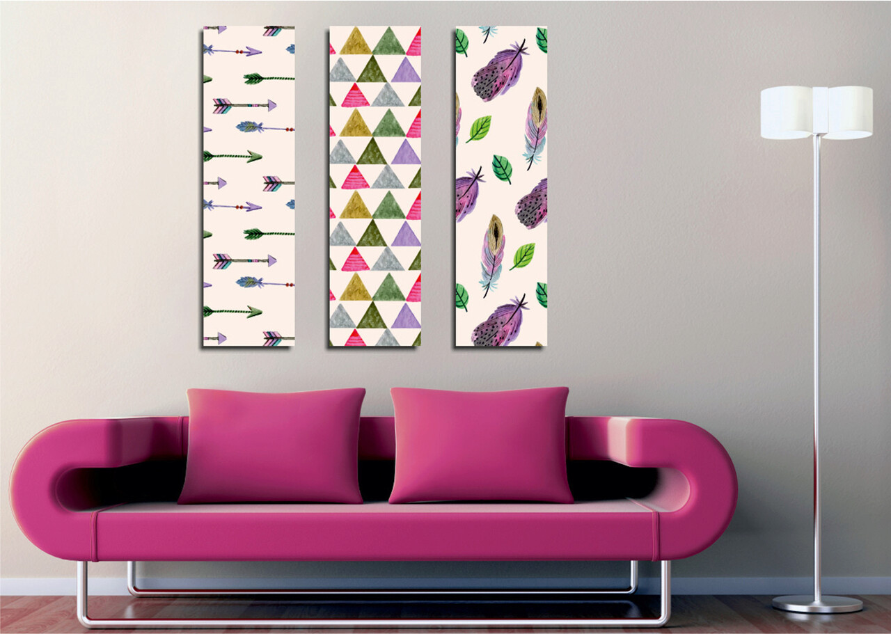 Set 3 tablouri decorative, CU09, Canvas, 20 x 70 cm, 3 piese, Multicolor