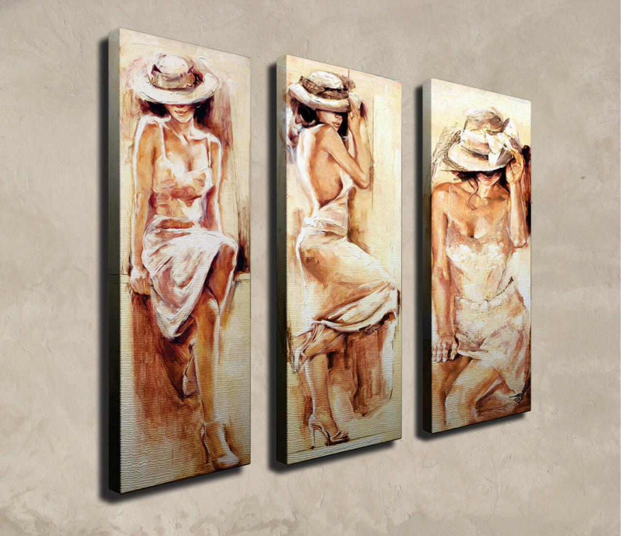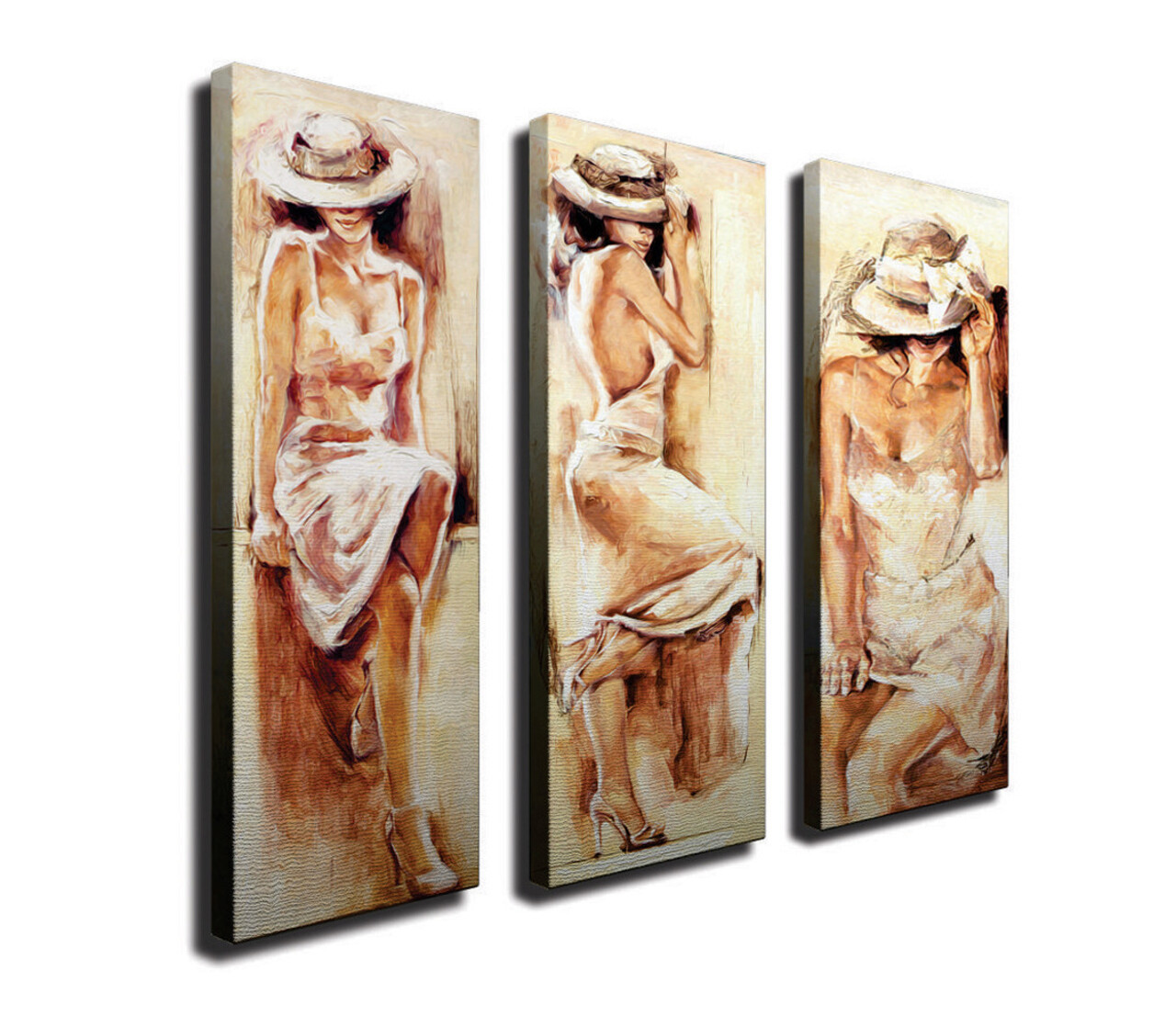 Set 3 tablouri decorative, CU14, Canvas, Lemn, Multicolor
