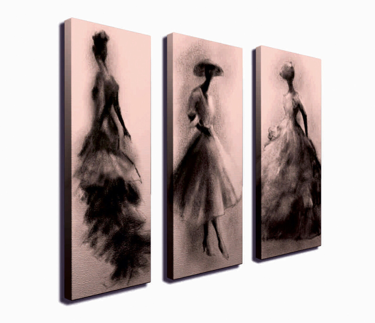 Set 3 tablouri decorative, CU19, Canvas, Lemn, Multicolor