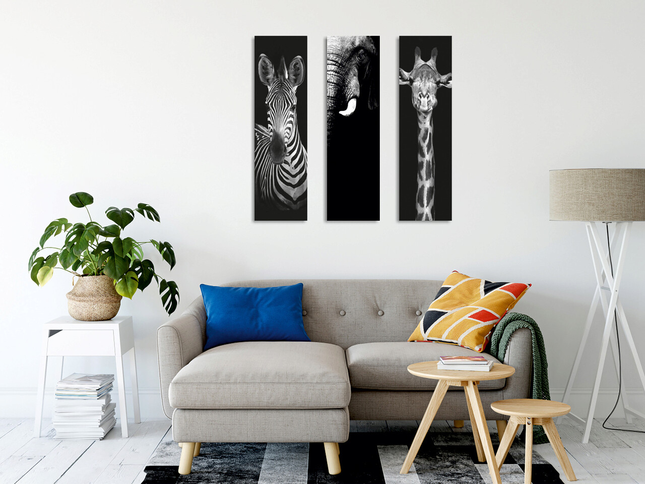 Set 3 tablouri decorative, CU24, 60% bumbac/40% poliester, Rama de lemn, Multicolor