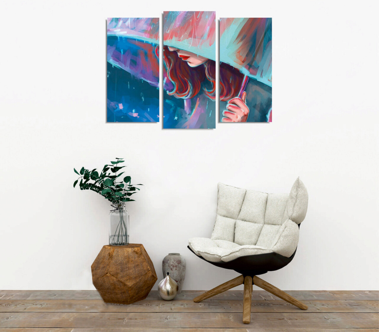 Set 3 tablouri decorative, UC104, Canvas, Lemn, Multicolor