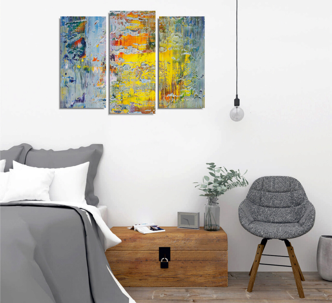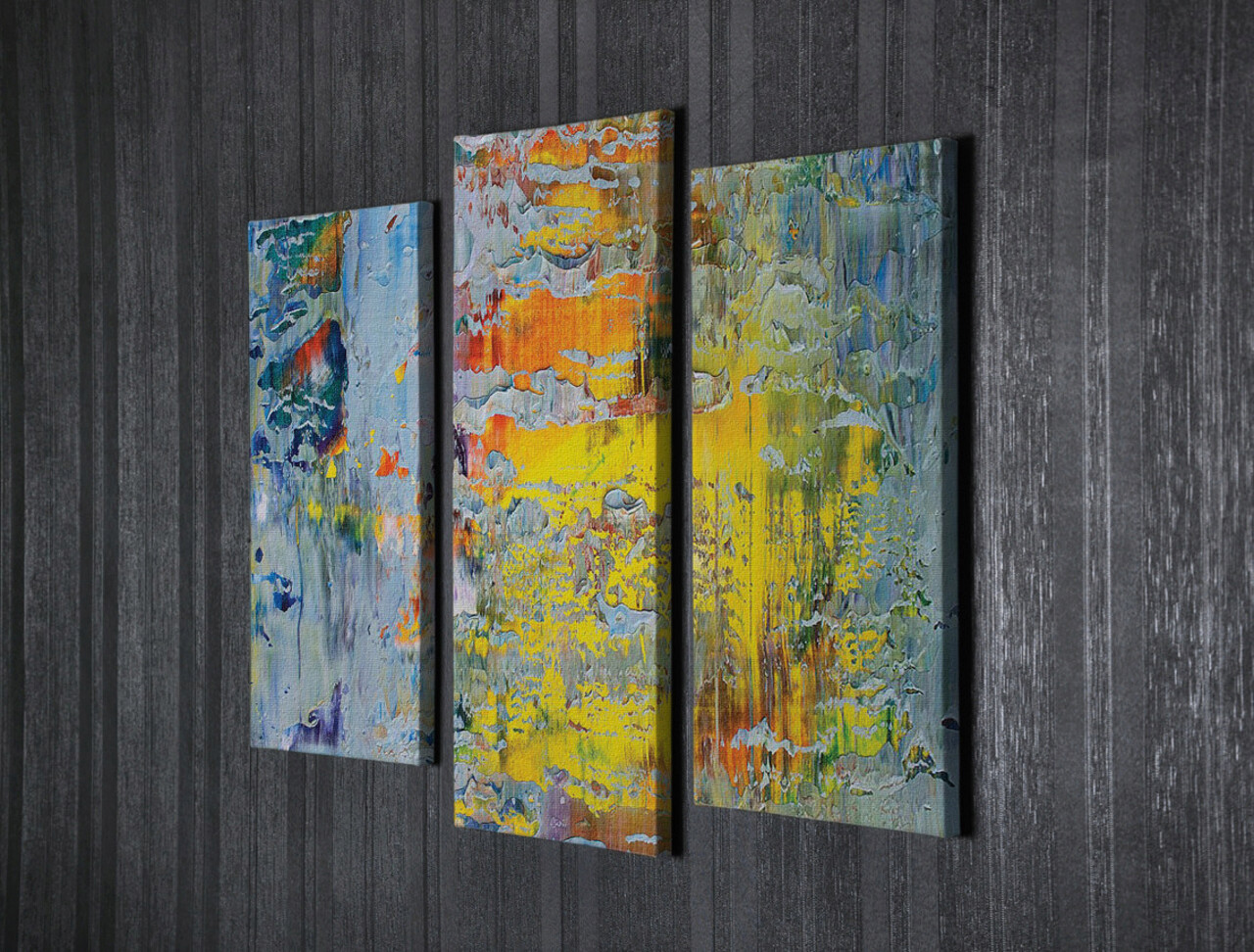 Set 3 tablouri decorative, UC105, Canvas, Lemn, Multicolor