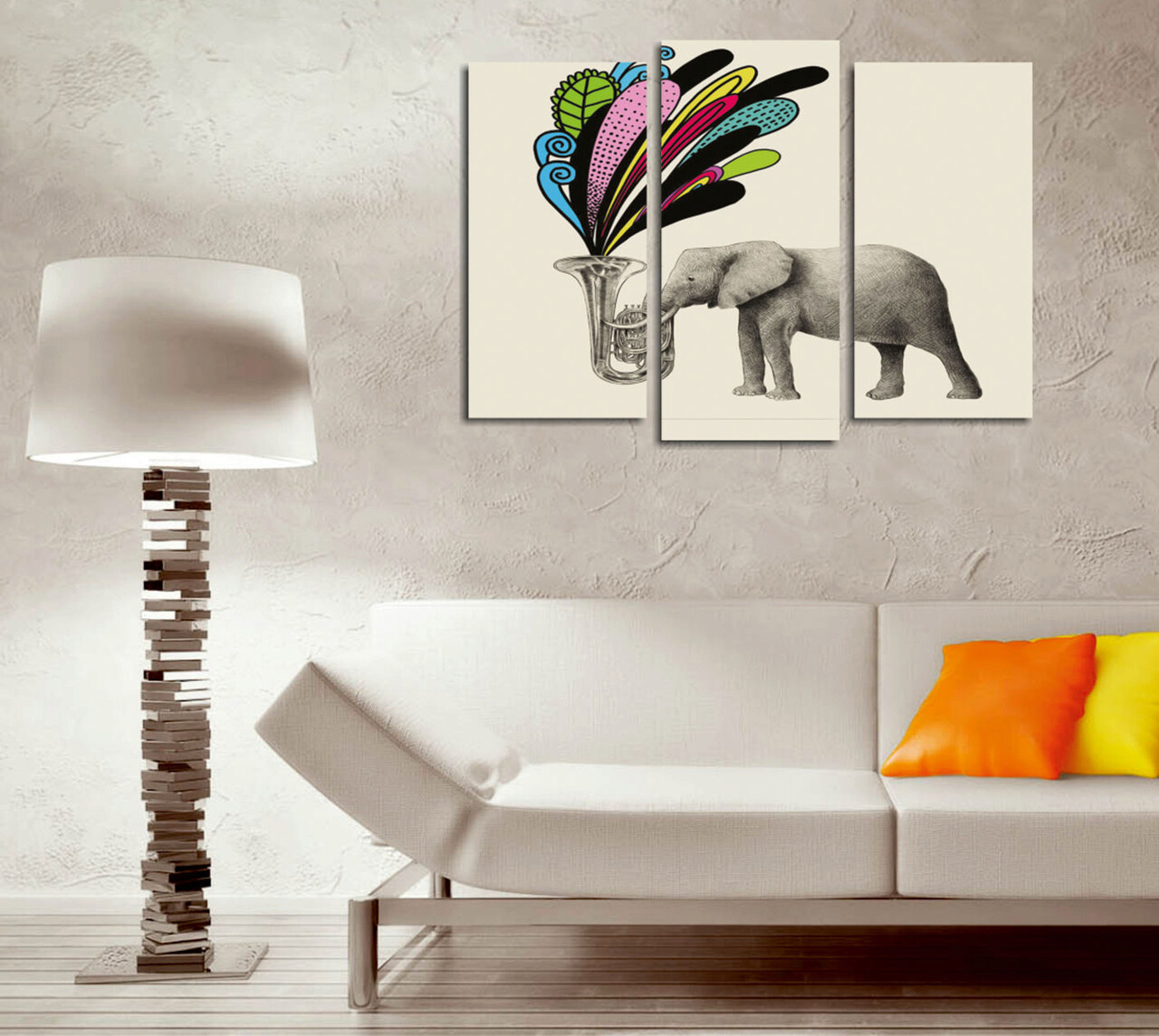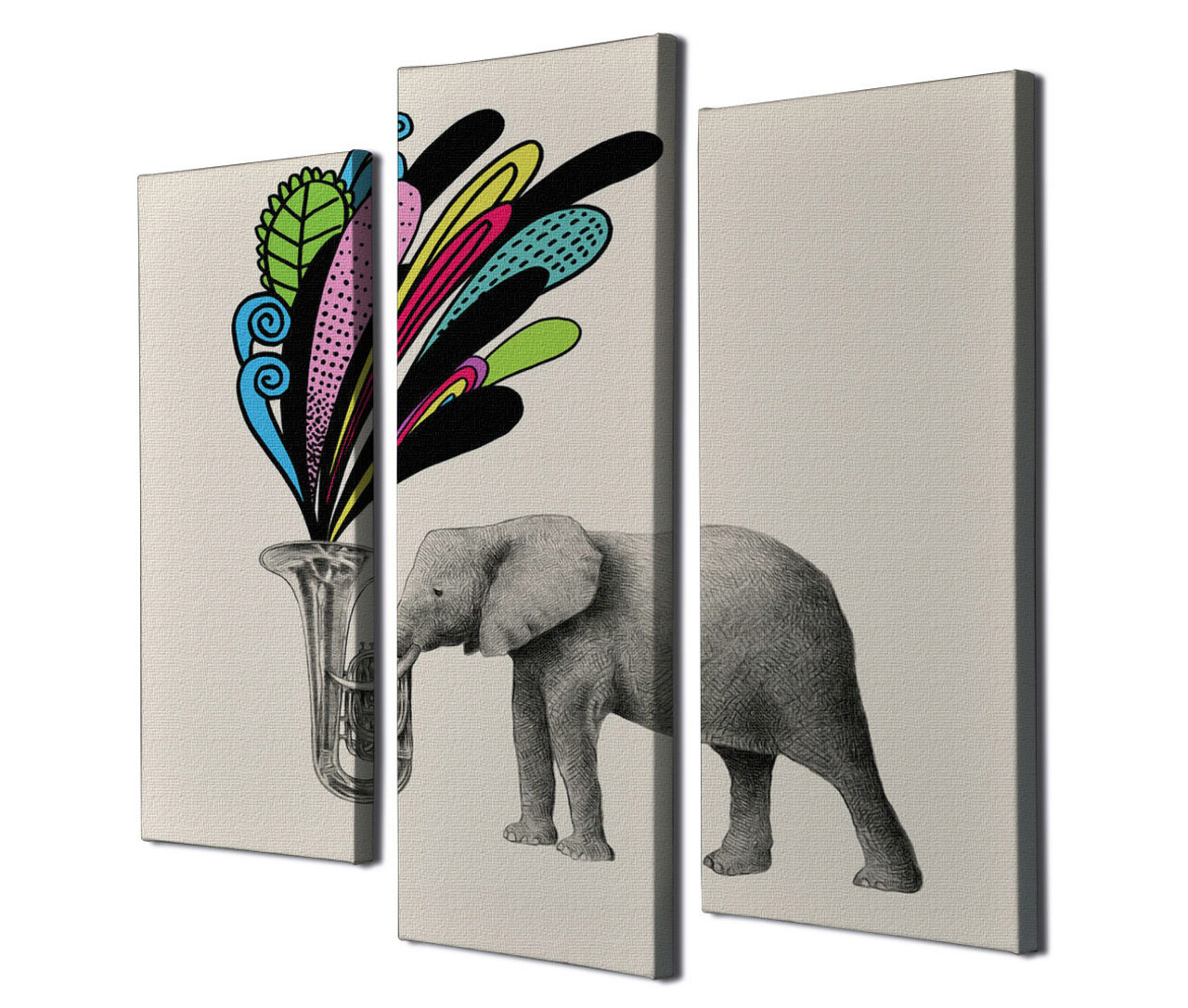 Set 3 tablouri decorative, UC66, Canvas, 45 x 20 cm, Multicolor