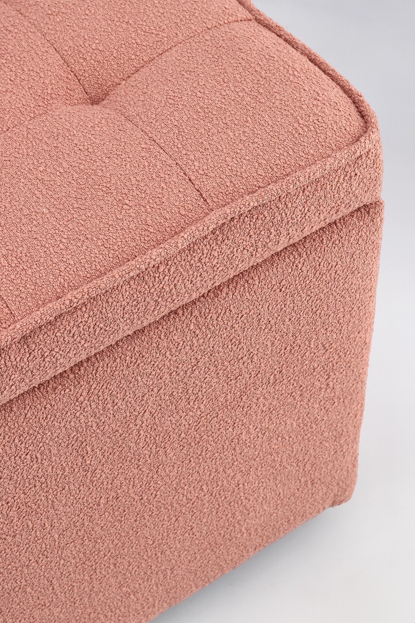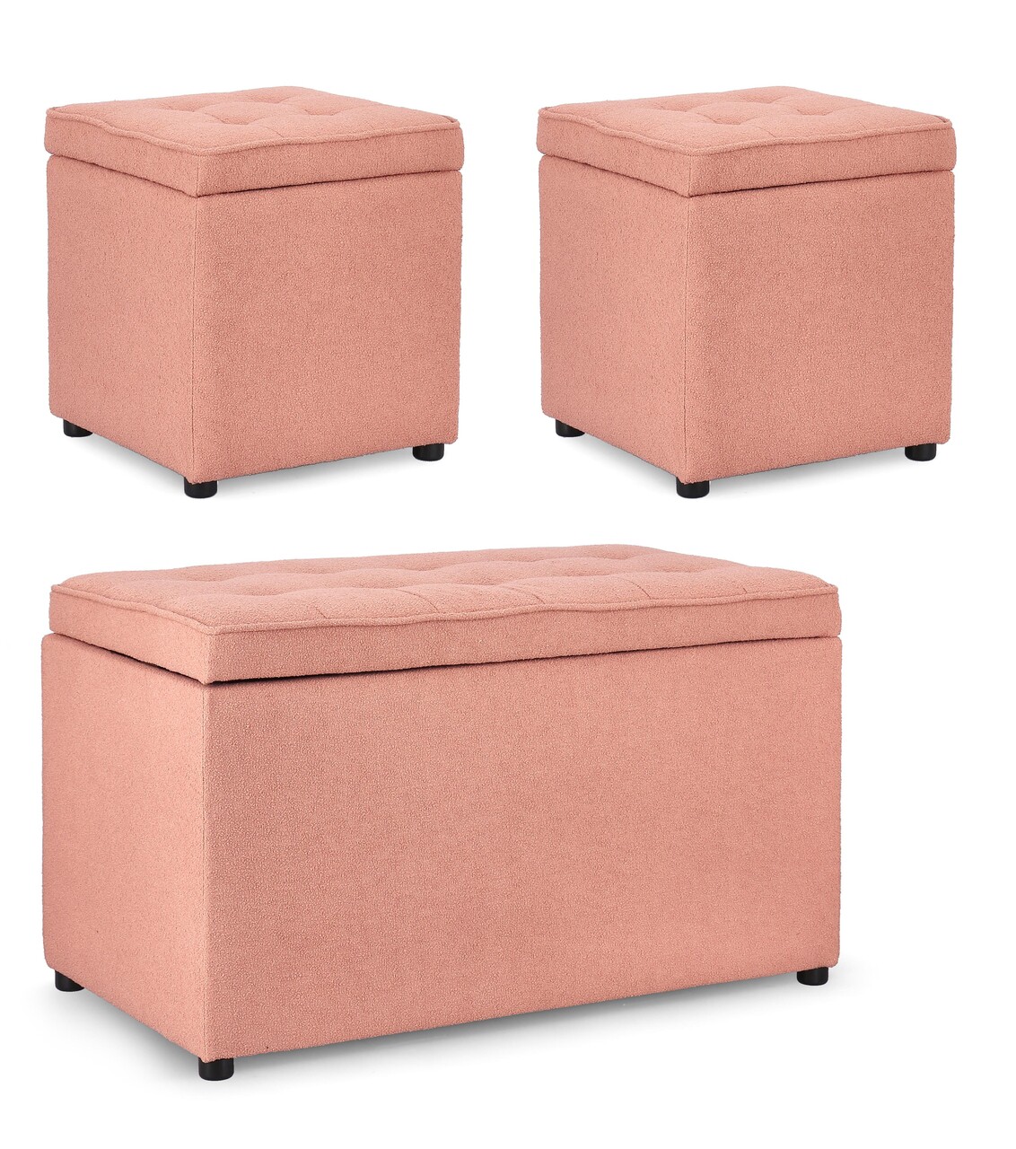Set 3 taburete cu spatiu de depozitare Derrick, Bizzotto, 40x40x40 cm/89x48x51 cm, lemn de pin/poliester Boucle, roz pastel