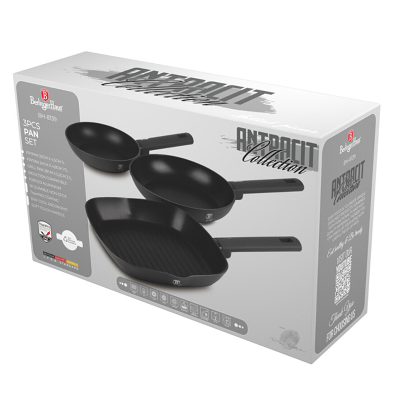 Set 3 tigai Berlinger Haus, Anthracite, 20/24/28 cm, aluminiu forjat, antracit mat
