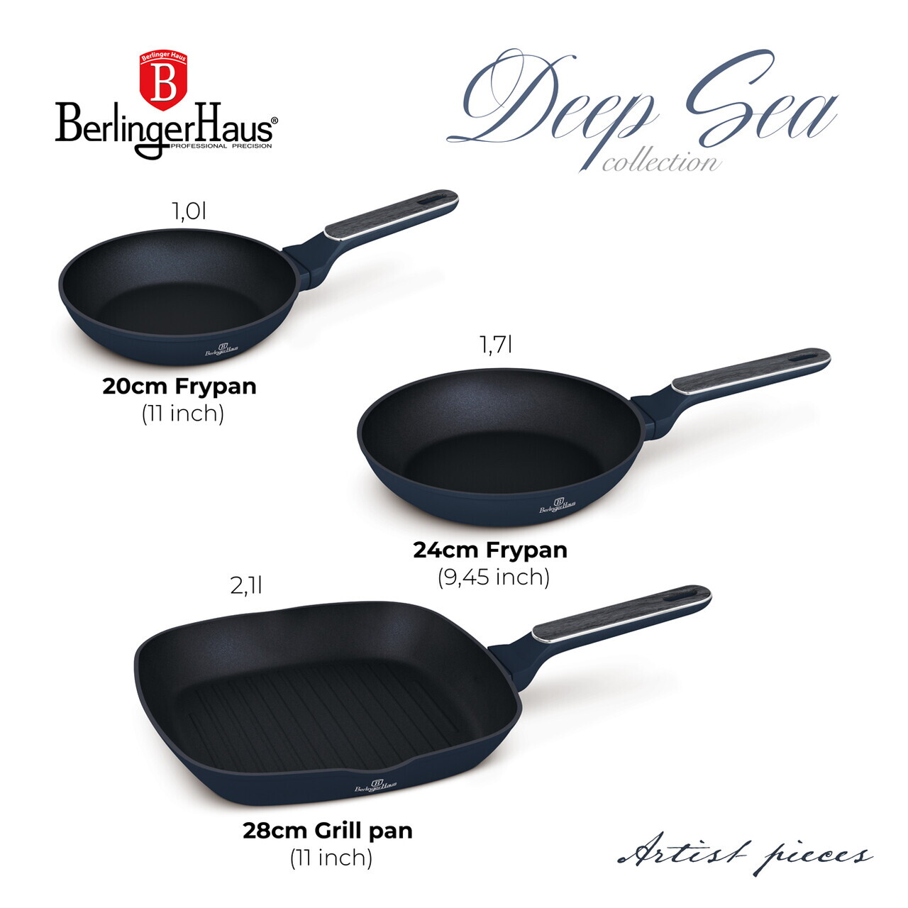 Set 3 tigai Berlinger Haus, Deep Sea, 20/24/28 cm, aluminiu forjat, albastru mat/gri
