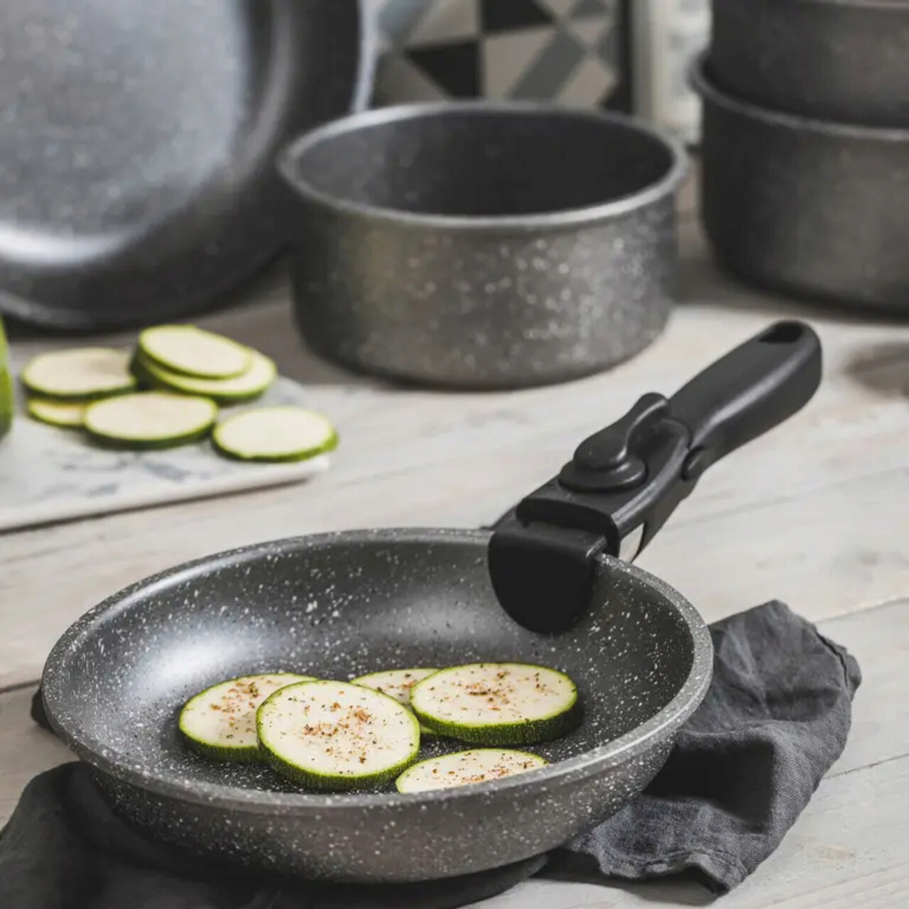 Set 3 tigai cu maner detasabil Silverstone, Ambition, 20/24/28 cm, invelis Qualum Basic Stone