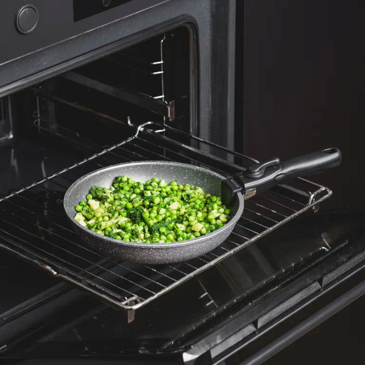 Oalele si tigaile cu maner detasabil din linia Silverstone sunt o solutie ideala pentru toti cei care nu au suficient spatiu in dulapurile de bucatarie si aleg solutii inteligente care faciliteaza treburile de zi cu zi. Vasele sunt din aluminiu. Linia Silverstone se mandreste cu oale si tigai de cea mai buna calitate, care sunt fiabile in utilizare, durabile si elegante. In interior, acestea sunt acoperite cu un strat Qualum Basic Stone Edition de inalta calitate, care este antiaderent si rezistent la abraziune. Au un maner detasabil, care garanteaza o economie maxima de spatiu in timpul depozitarii.