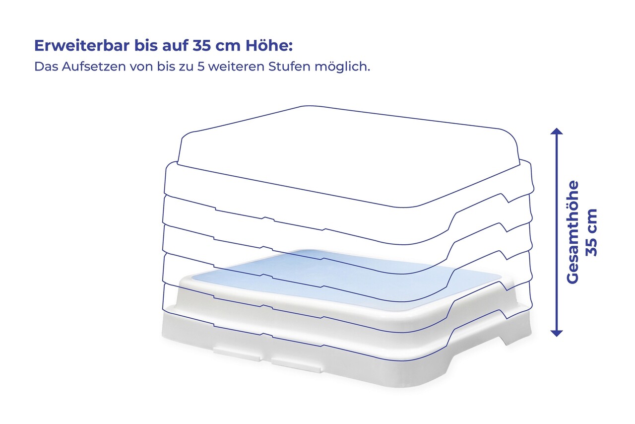 Set de 3 trepte inaltatoare este ideal pentru baia dumneavoastra. Este foarte util pentru a usura intrarea si iesirea din cada fara efort si fara riscul de alunecare. Inaltimea unei trepte este de 10 cm si suprafata acesteia este prevazuta cu un covoras de spuma anti-alunecare foarte confortabil. Greutatea maxima suportata este de 190 kg si treptele pot fi transportate cu usurinta.