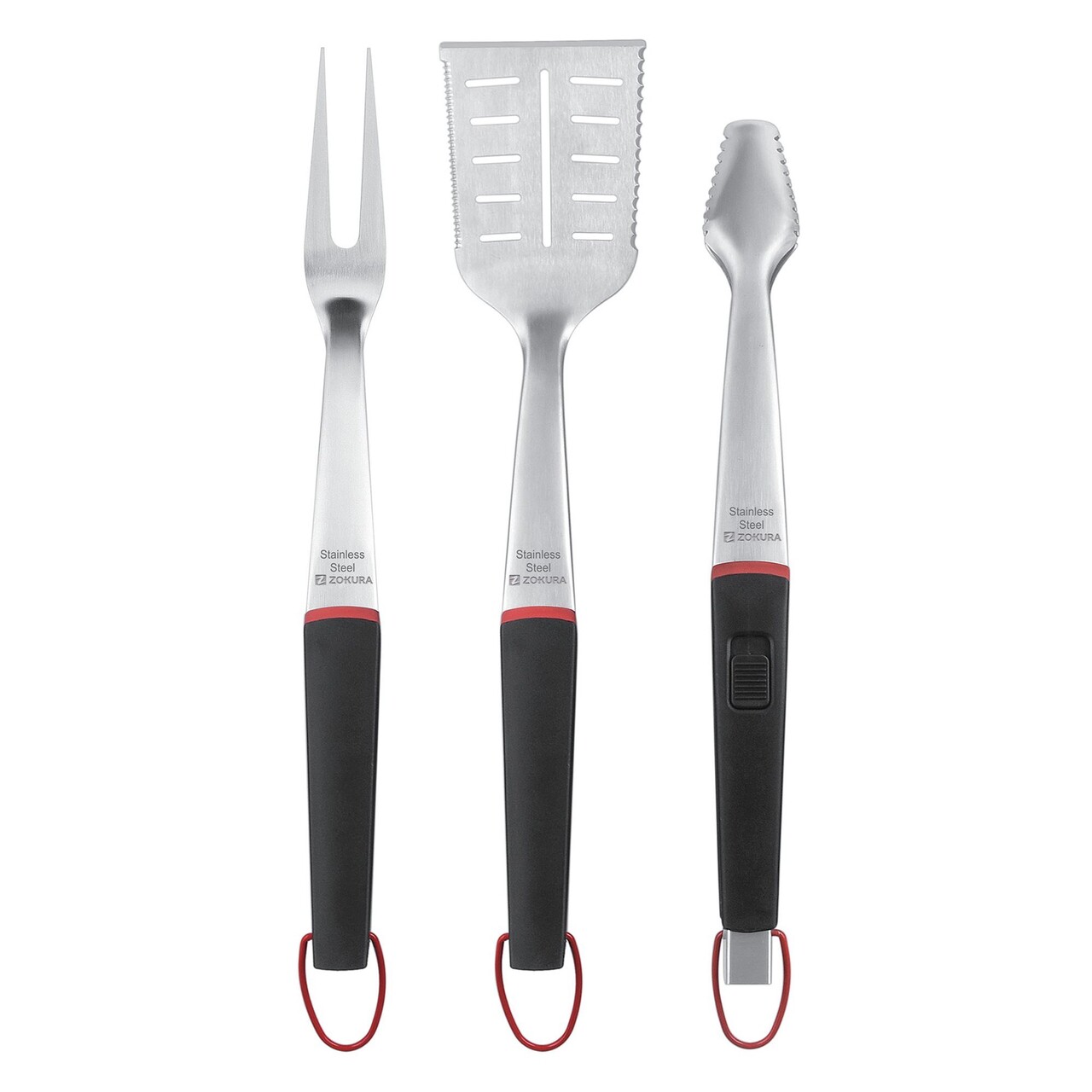 Setul de ustensile pentru gratar, Marca Zokura, Este format din3 pieseSi ofera instrumentele esentiale si necesare la pregatirea gustoaselor preparate la gratar.