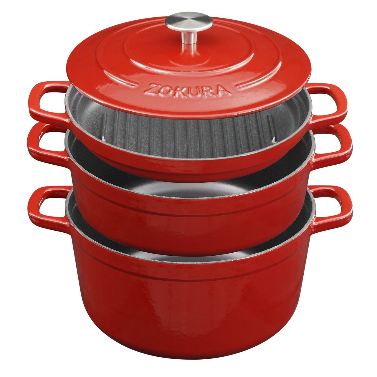 Set 3 vase de gatit, stivuibile, 25 cm, Fonta - Zokura