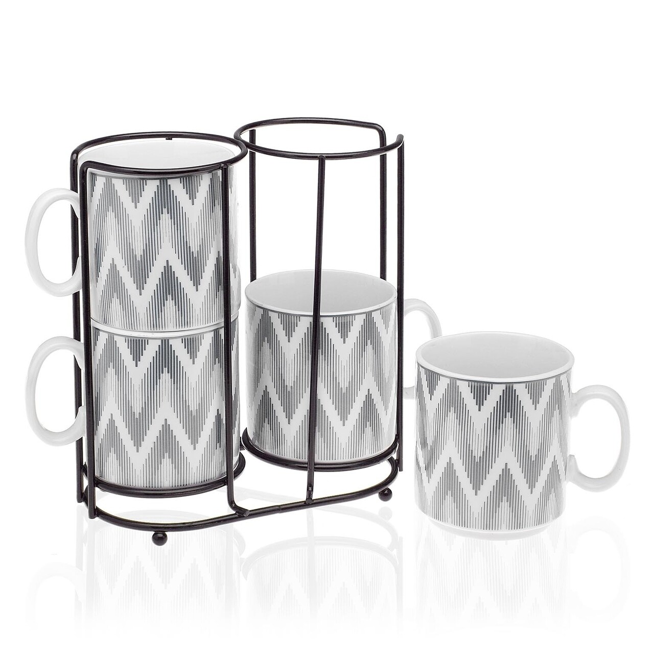 Set 4 cani cu suport Cierra, Versa, Ø10.5x8 cm, portelan, gri