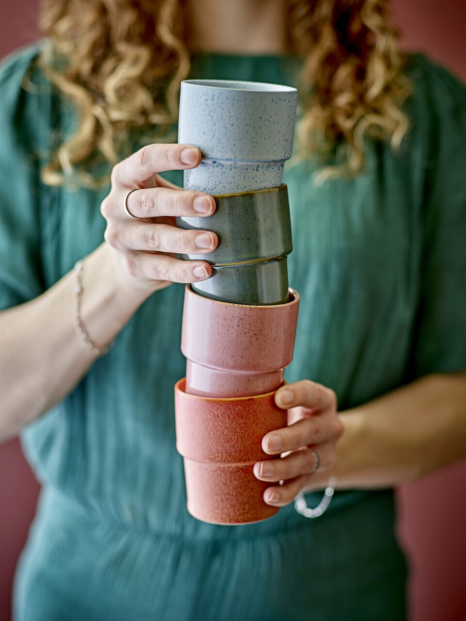 Set 4 cesti, Bloomingville, Ewan Multi, 7.5x9 cm, 150 ml, ceramica, multicolor