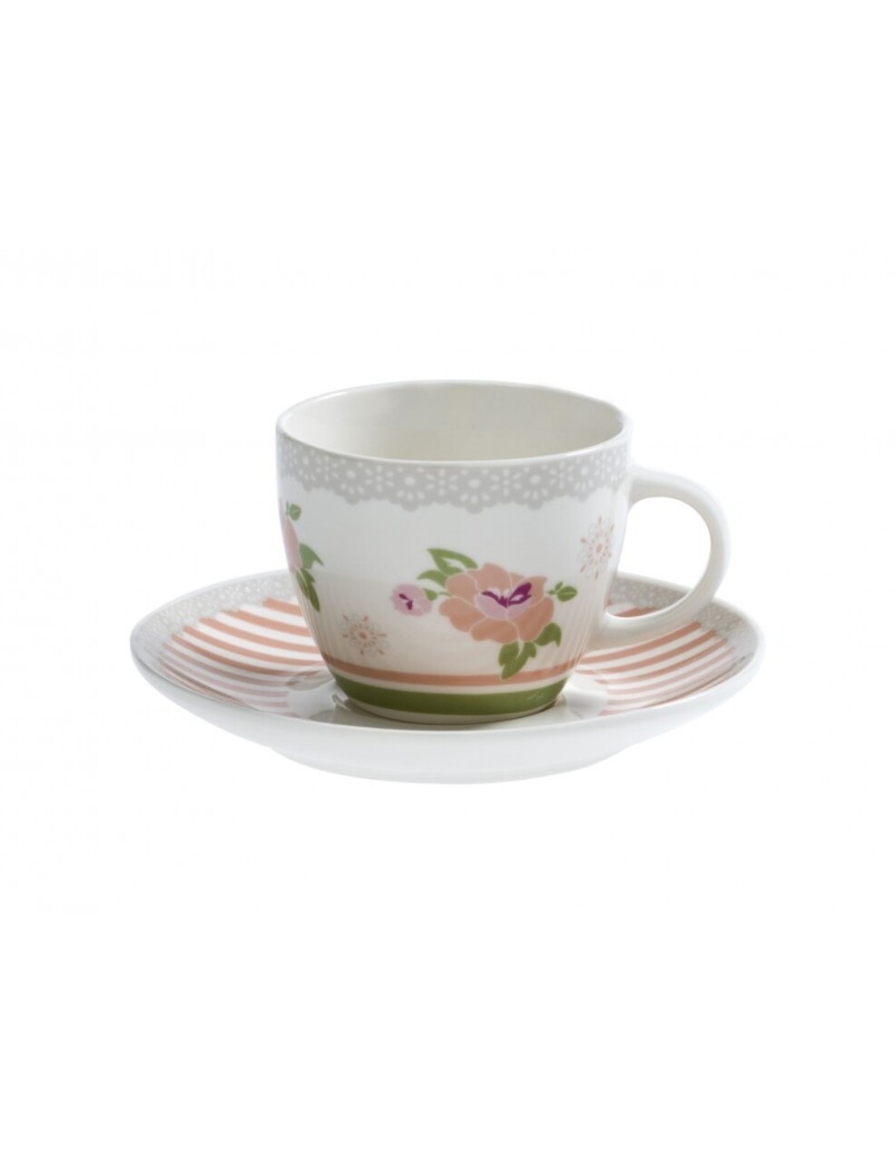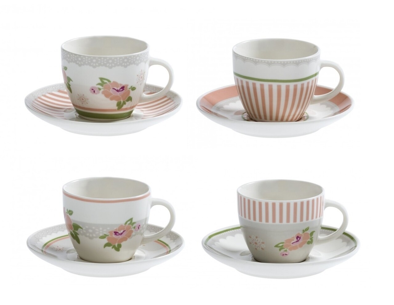 Set 4 cesti cu farfurie pentru cafea, Nonna Rosa S, Brandani, 90 ml, portelan