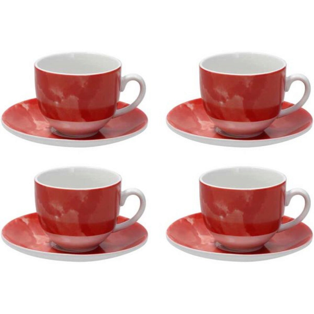 Set 4 cesti de cafea cu farfurie Sfera, Andrea Fontebasso, 250 ml, portelan, rosu