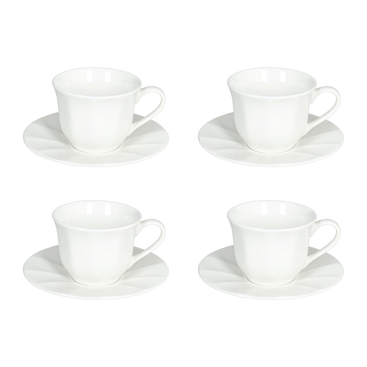 Set 4 cesti de ceai cu farfurie Queen, Andrea Fontebasso, 210 ml, New Bone China, alb