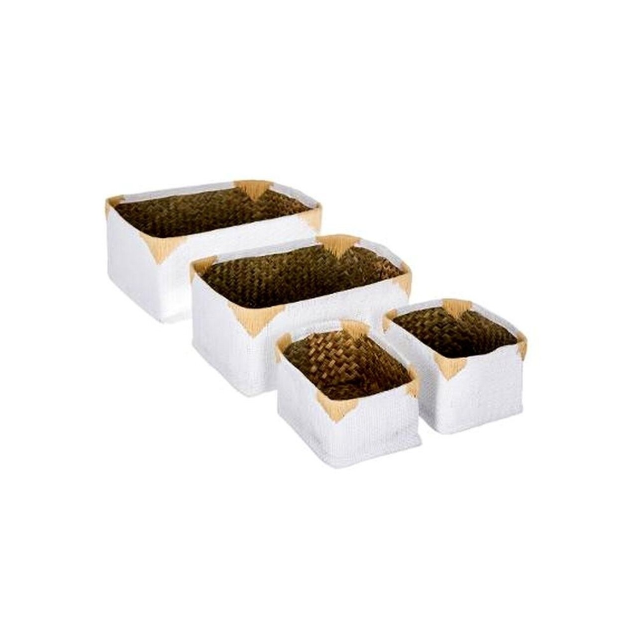Set 4 cosuri pentru depozitare, 140391A, hartie/rachita, alb