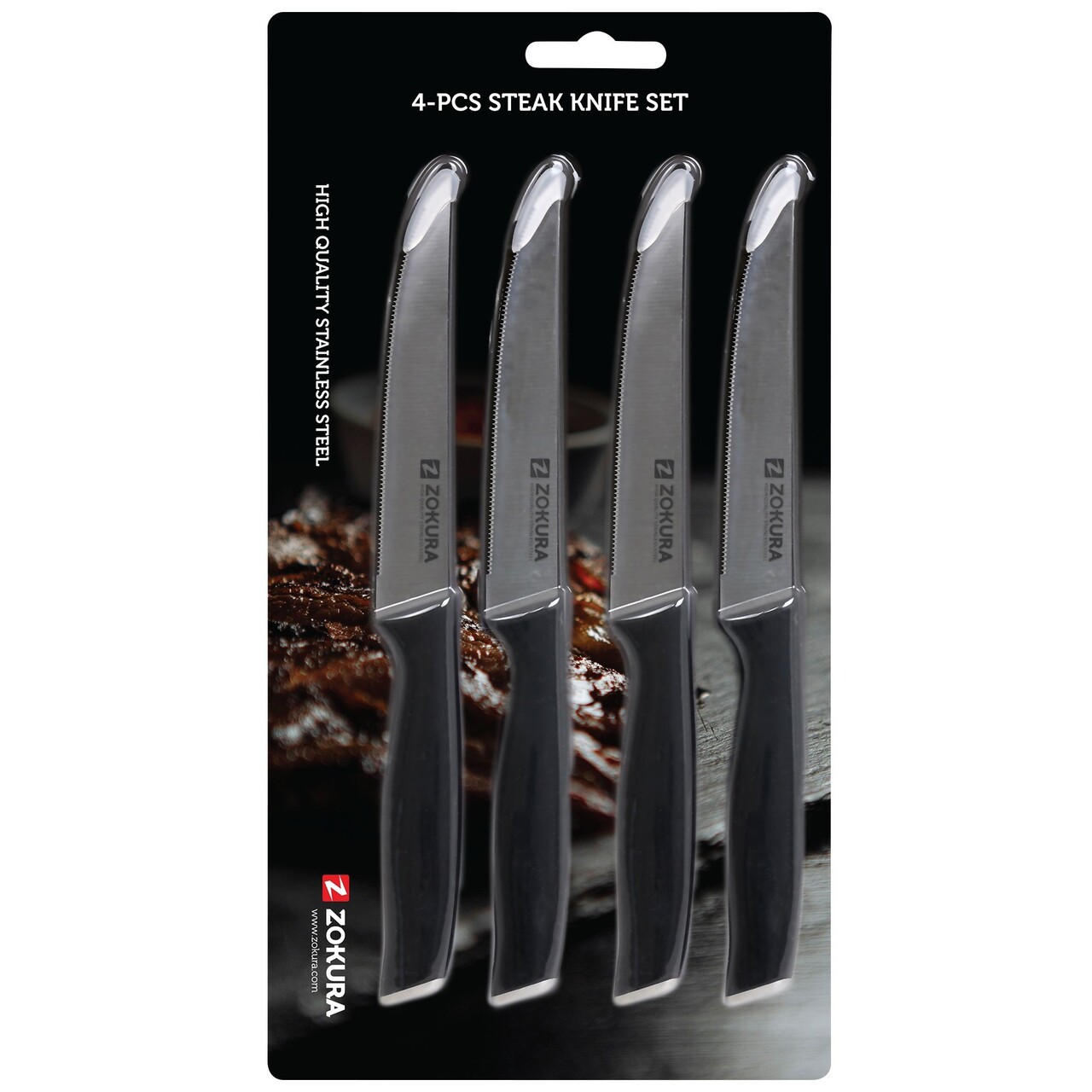 Set 4 Cutite pentru friptura, Marca Zokura, Fiecare avand lama de12,5 cm lungime, fabricate dinInox.