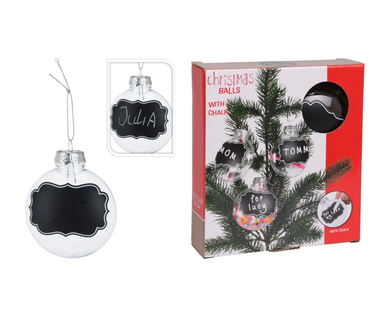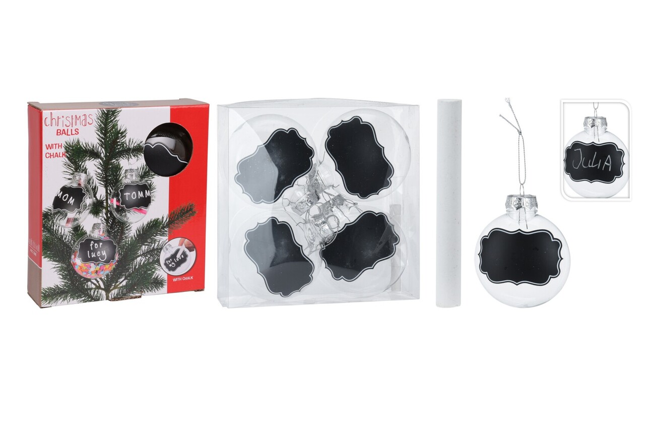 Set 4 globuri cu eticheta si creta Xmas, Excellent Houseware, 8.5 cm, polistiren