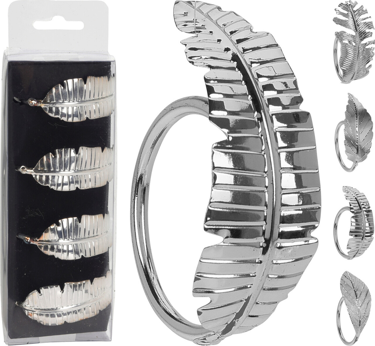 Set 4 inele pentru servetele Leaf V3, 4.5 x 3 cm, metal, argintiu