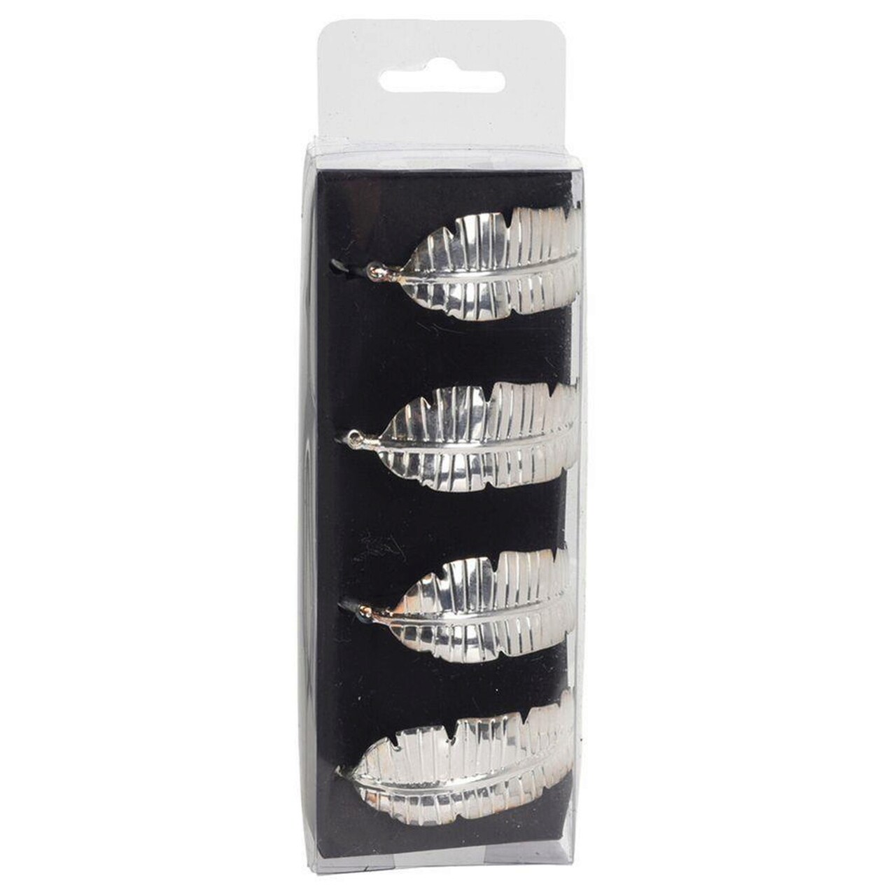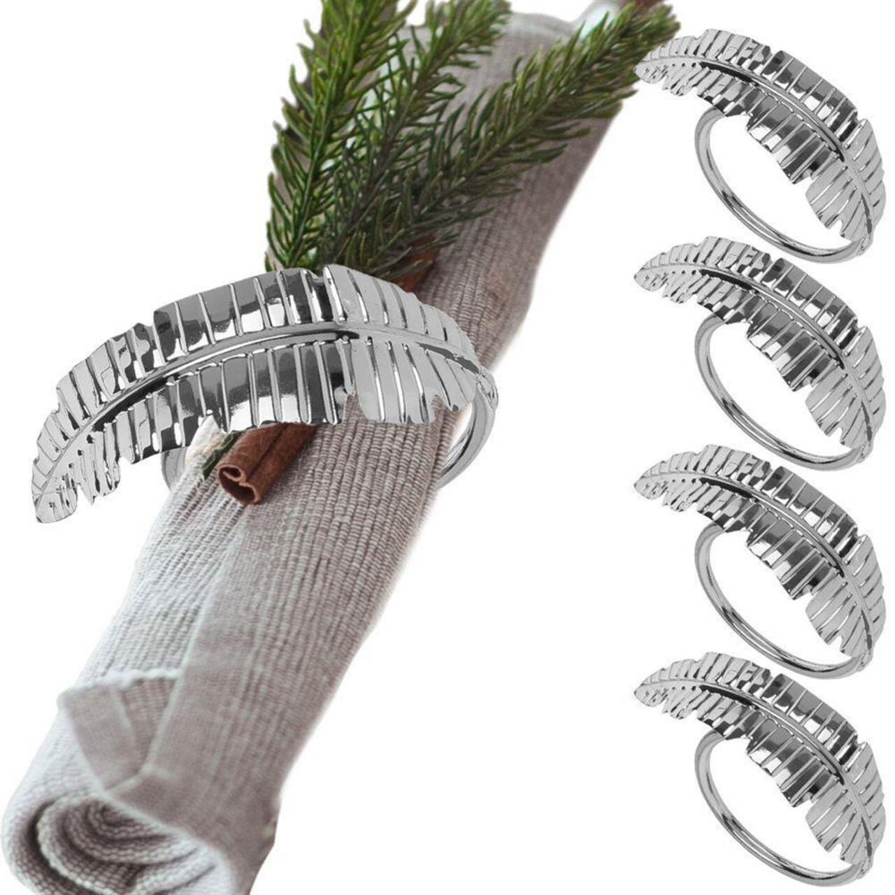 Set 4 inele pentru servetele Leaf V4, 4.5 x 3 cm, metal, argintiu