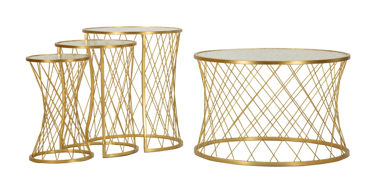 Set 4 masute de cafea Noah, Mauro Ferretti, 70x70x45 cm - 28x28x45 cm, fier/sticla, auriu