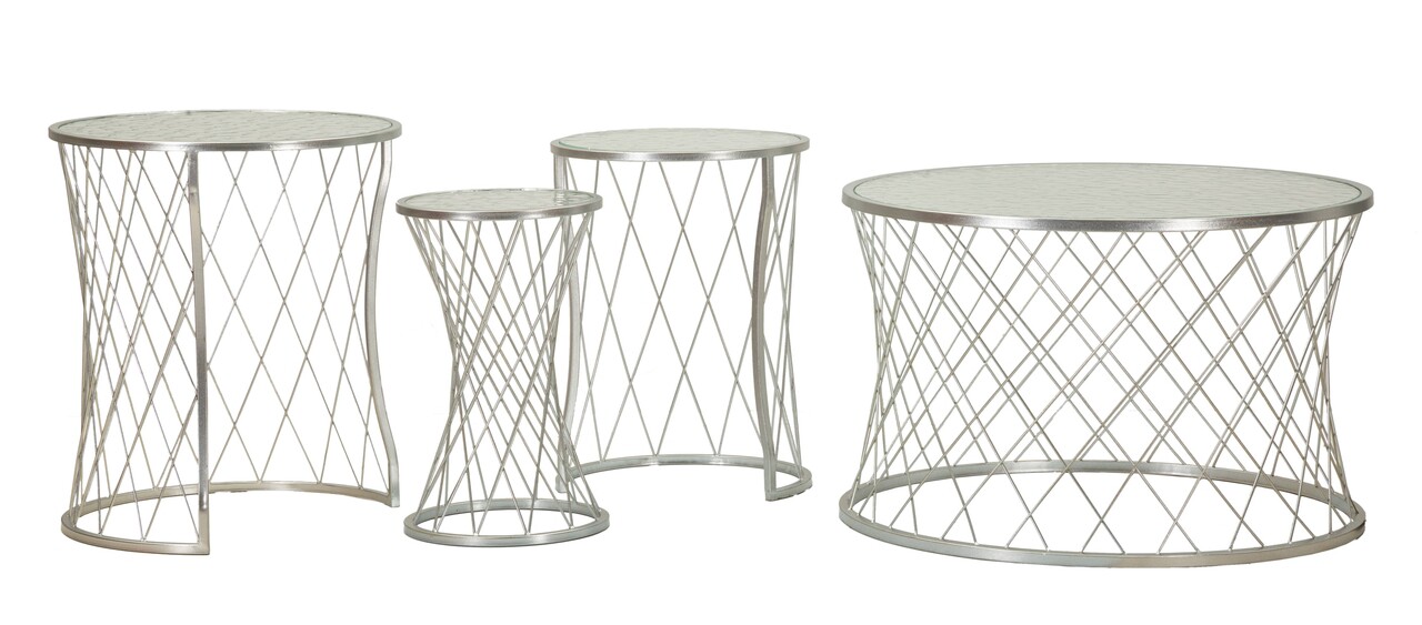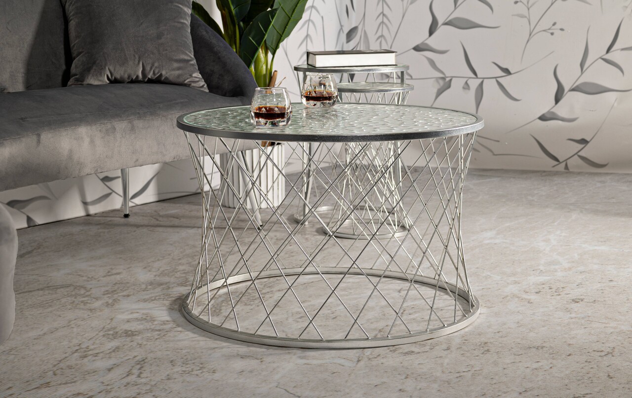 Set 4 masute de cafea Noah, Mauro Ferretti, 70x70x45 cm - 28x28x45 cm, fier/sticla, argintiu