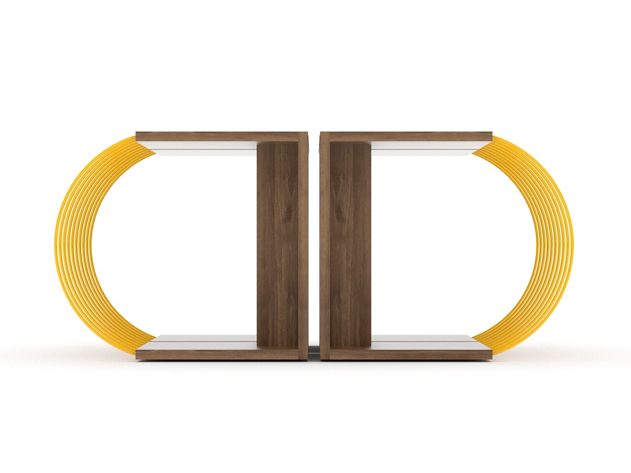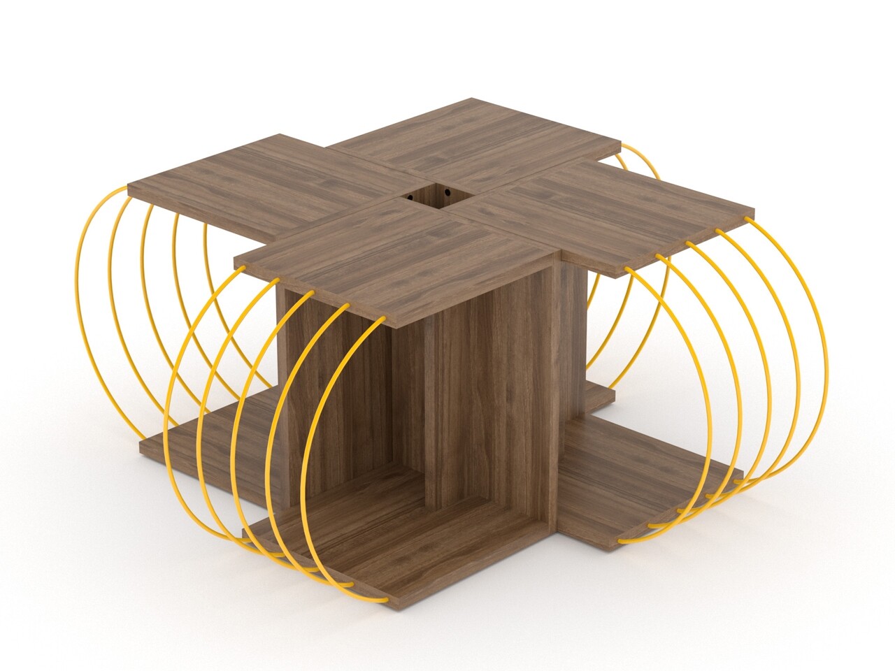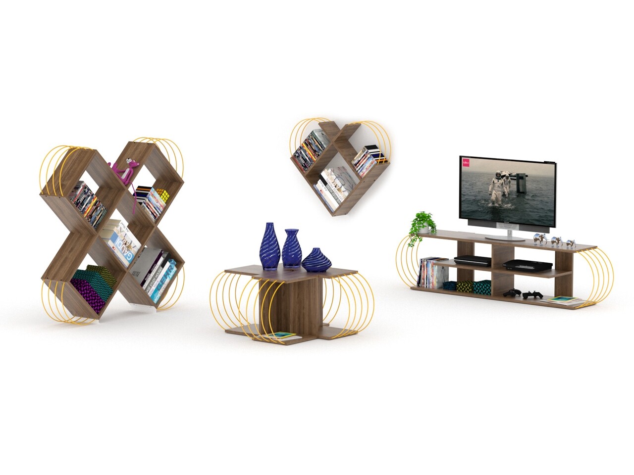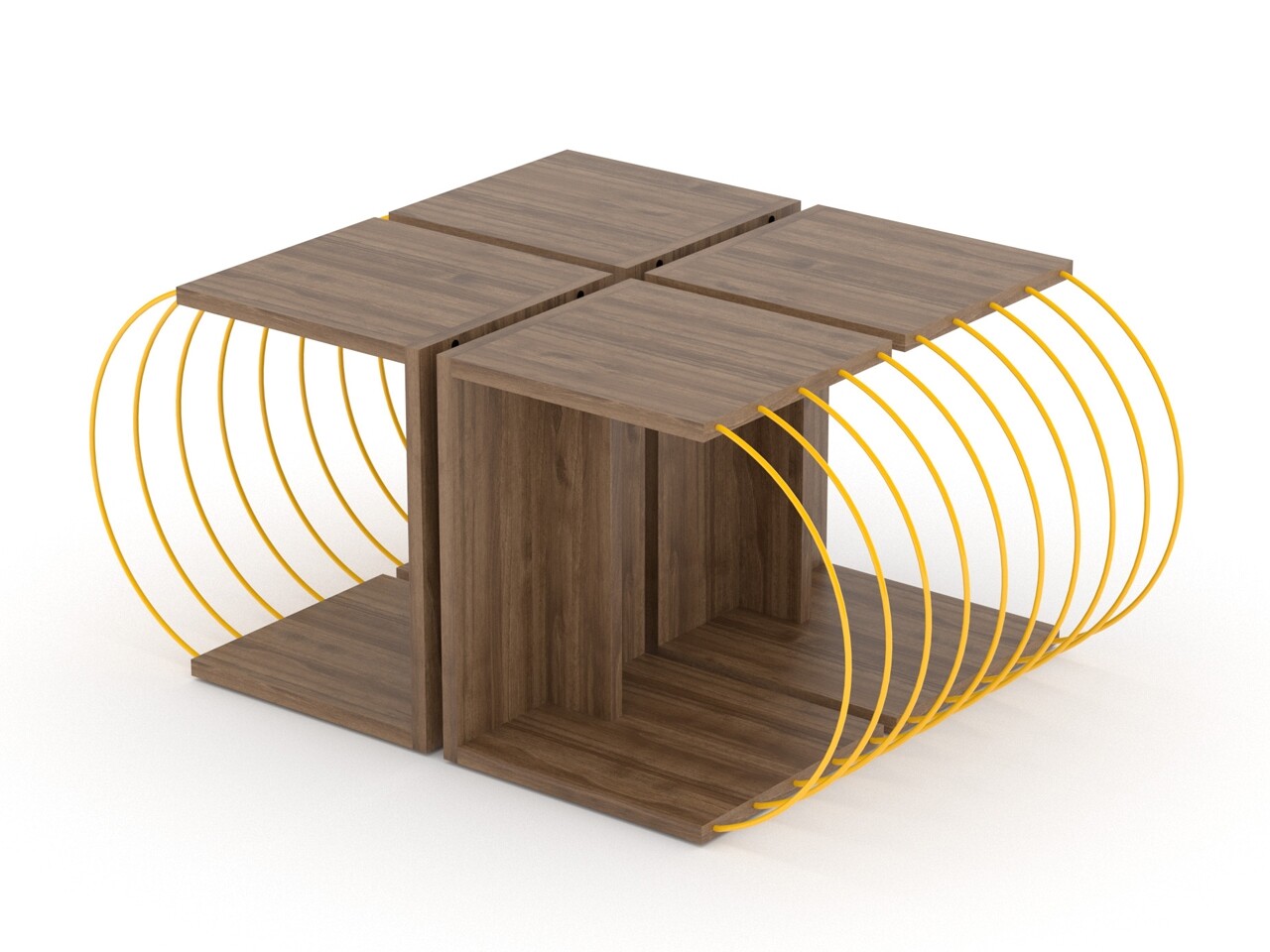 Set 4 masute de cafea Rafevi Case, 47 x 30 x 42 cm, PAL/metal, walnut/galben