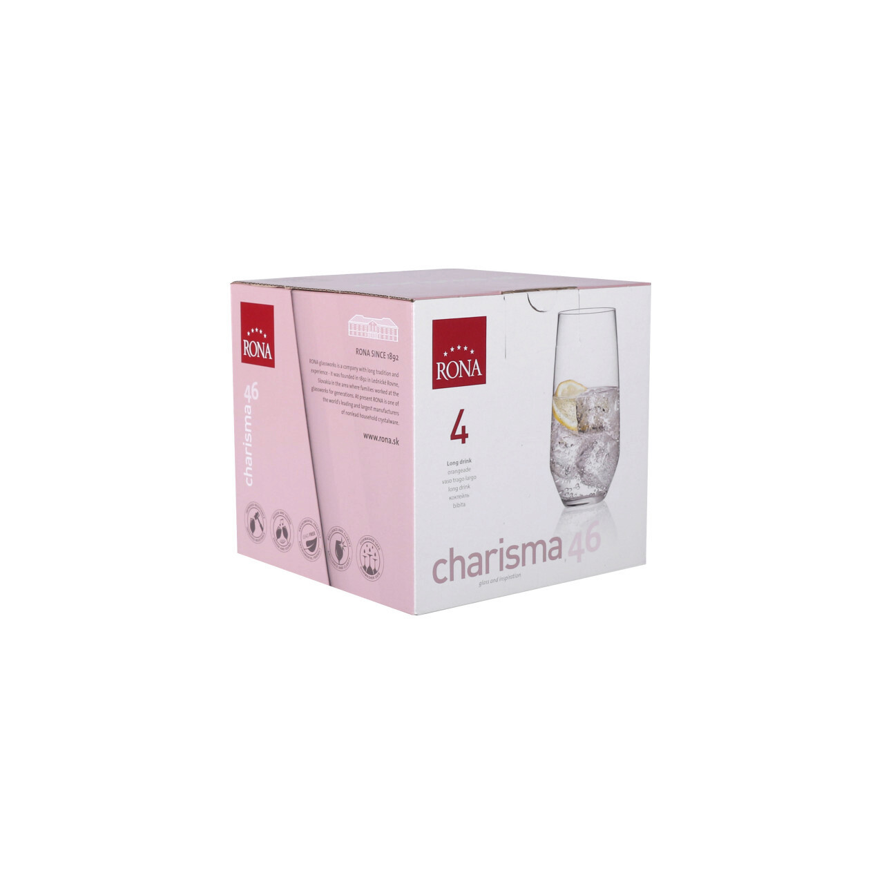 Set 4 pahare Long Drink, Charisma, Rona, 460 ml, sticla, transparent