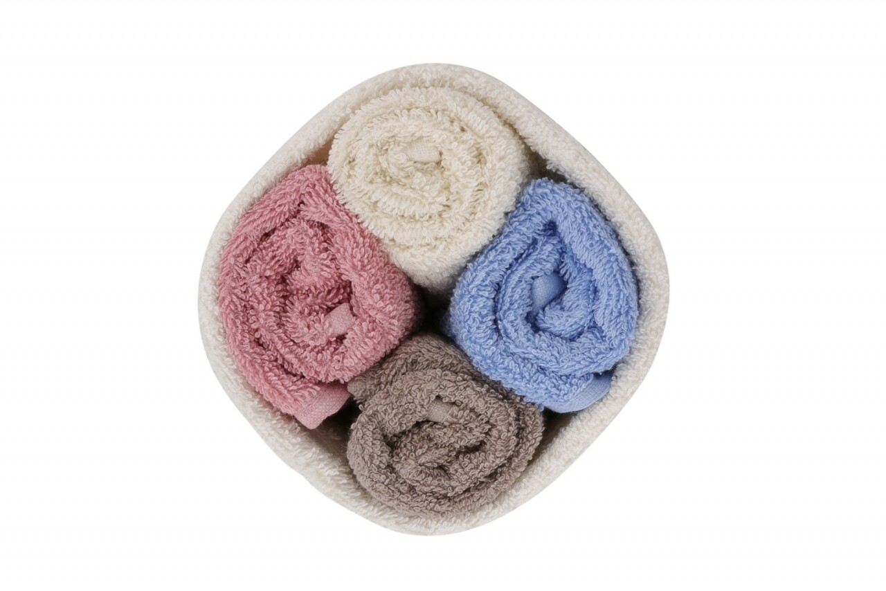 Set 4 prosoape de baie cu cos alb, Beverly Hills Polo Club, 30x30 cm, 100% bumbac, alb/albastru/maro/roz