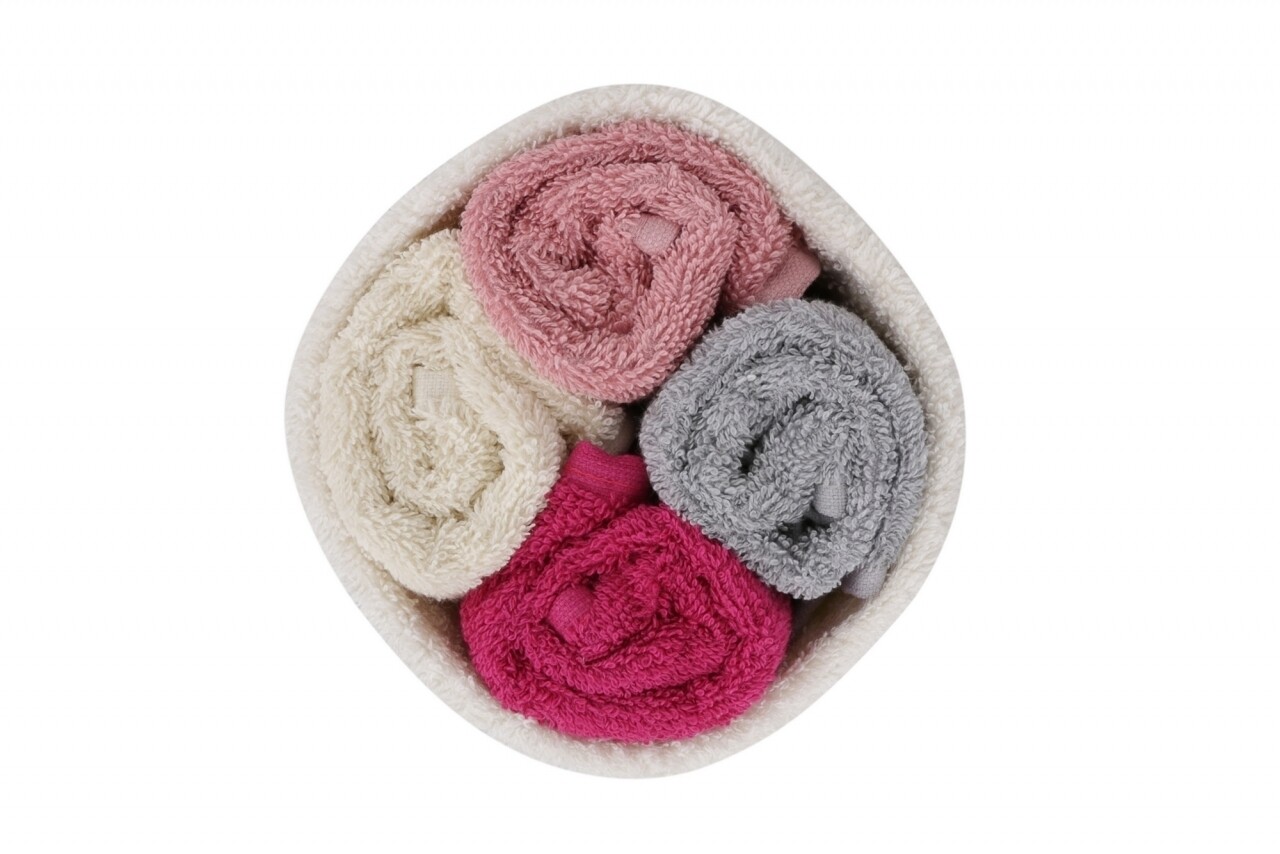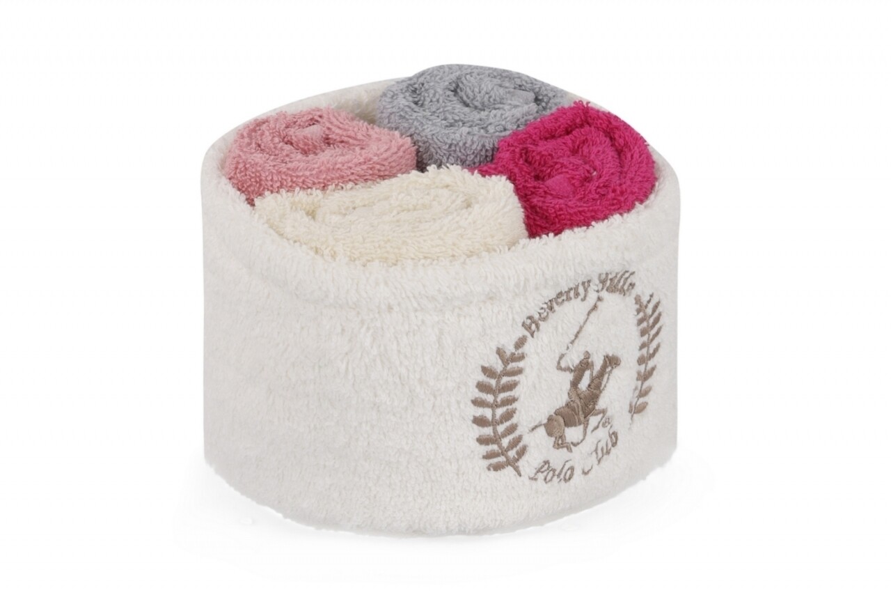Set 4 prosoape de baie cu cos, Beverly Hills Polo Club, 30x30 cm, 100% bumbac, alb/roz/gri/ciclam