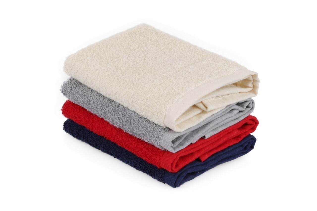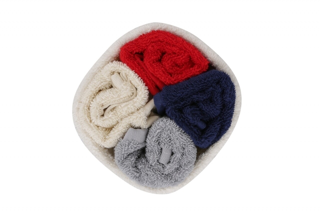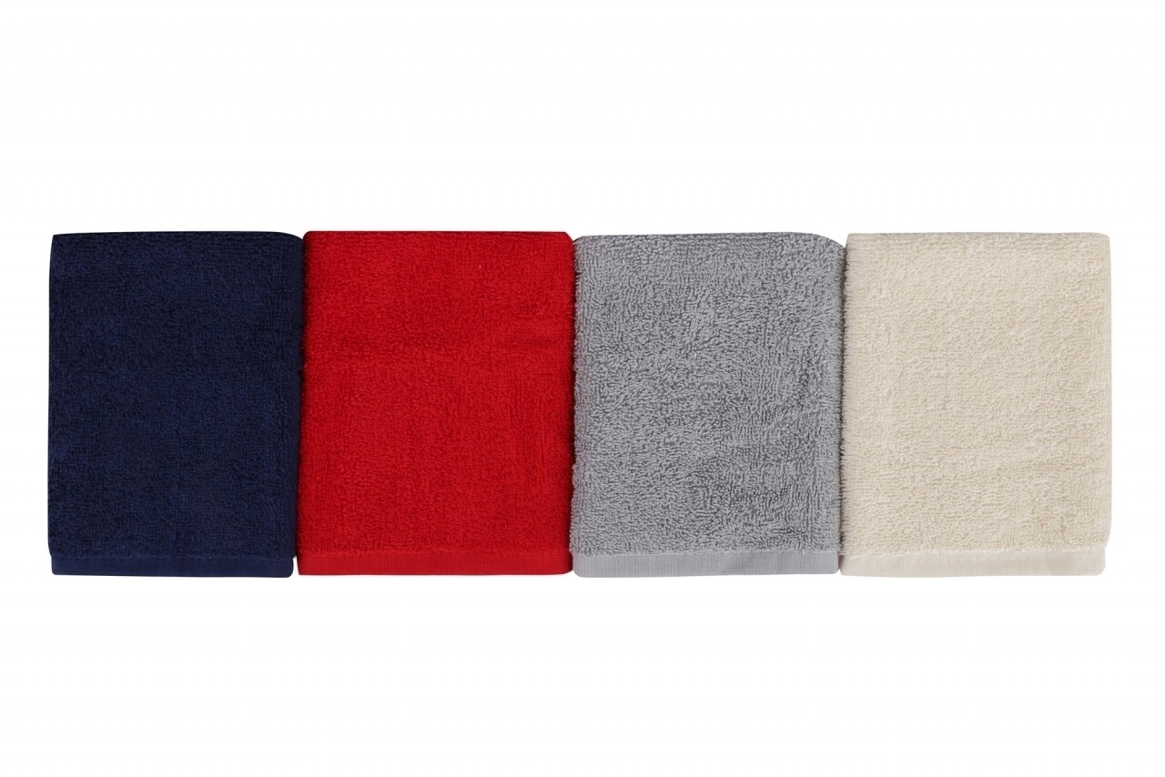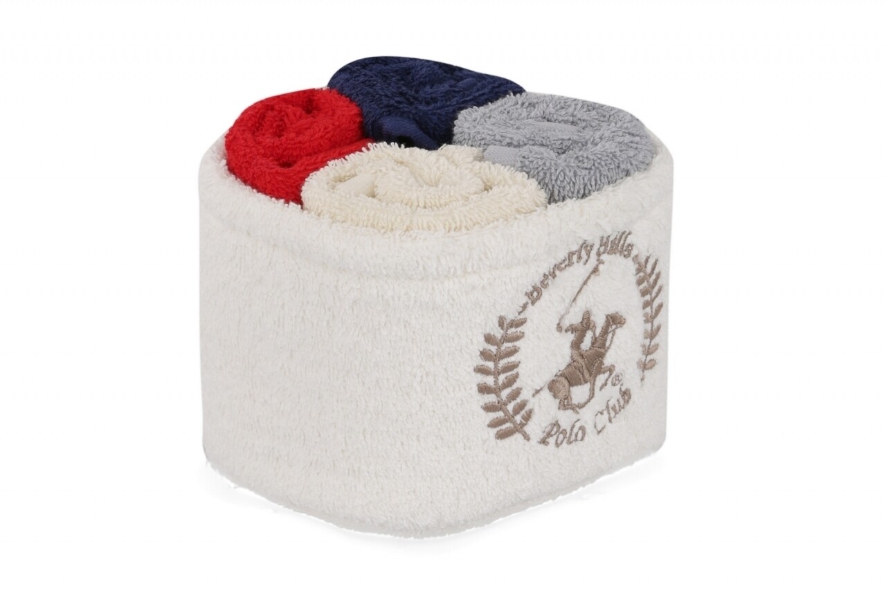 Set 4 prosoape de baie cu cos, Beverly Hills Polo Club, 30x30 cm, 100% bumbac, alb/gri/rosu/albastru inchis
