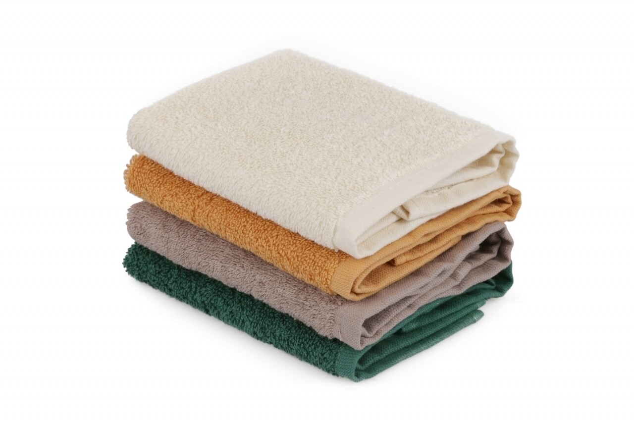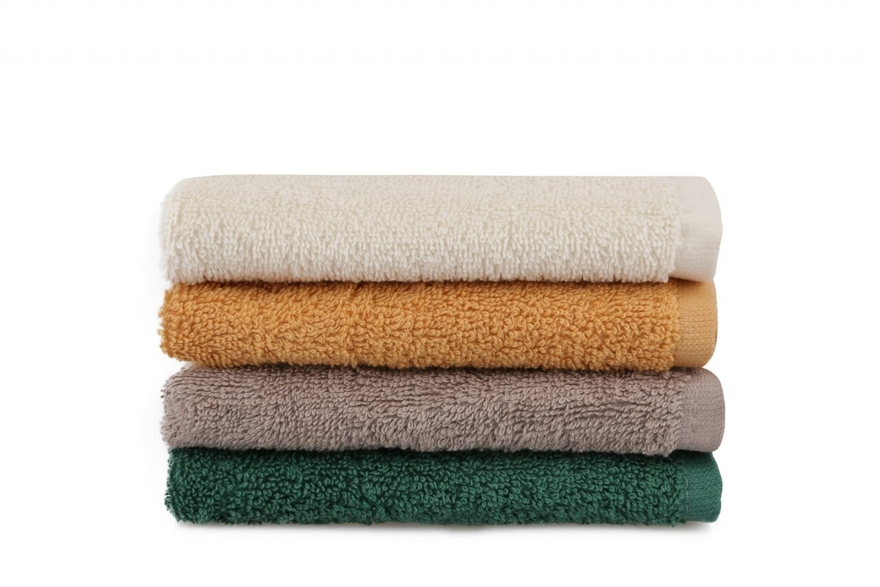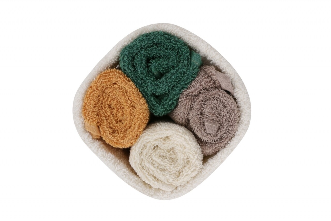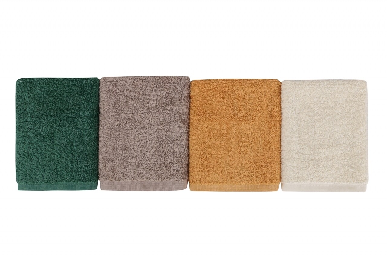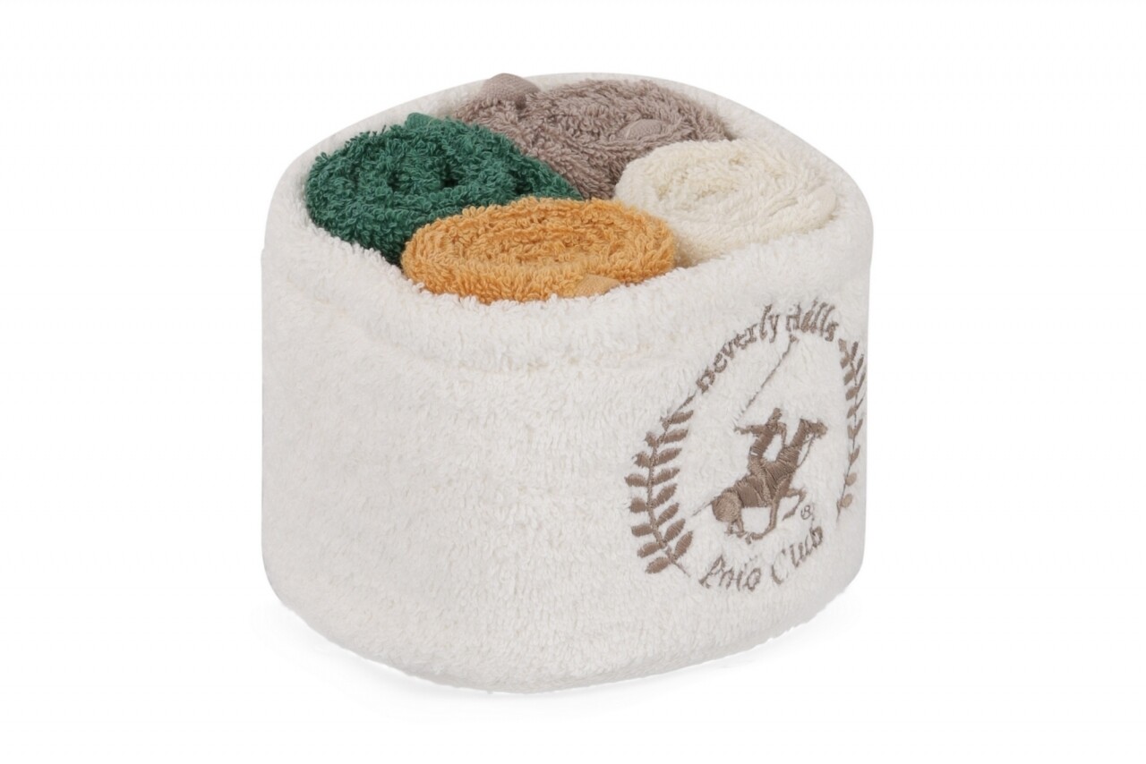 Set 4 prosoape de baie cu cos Beverly Hills Polo Club, 30x30 cm, 100% bumbac, alb/mustar/maro/verde inchis