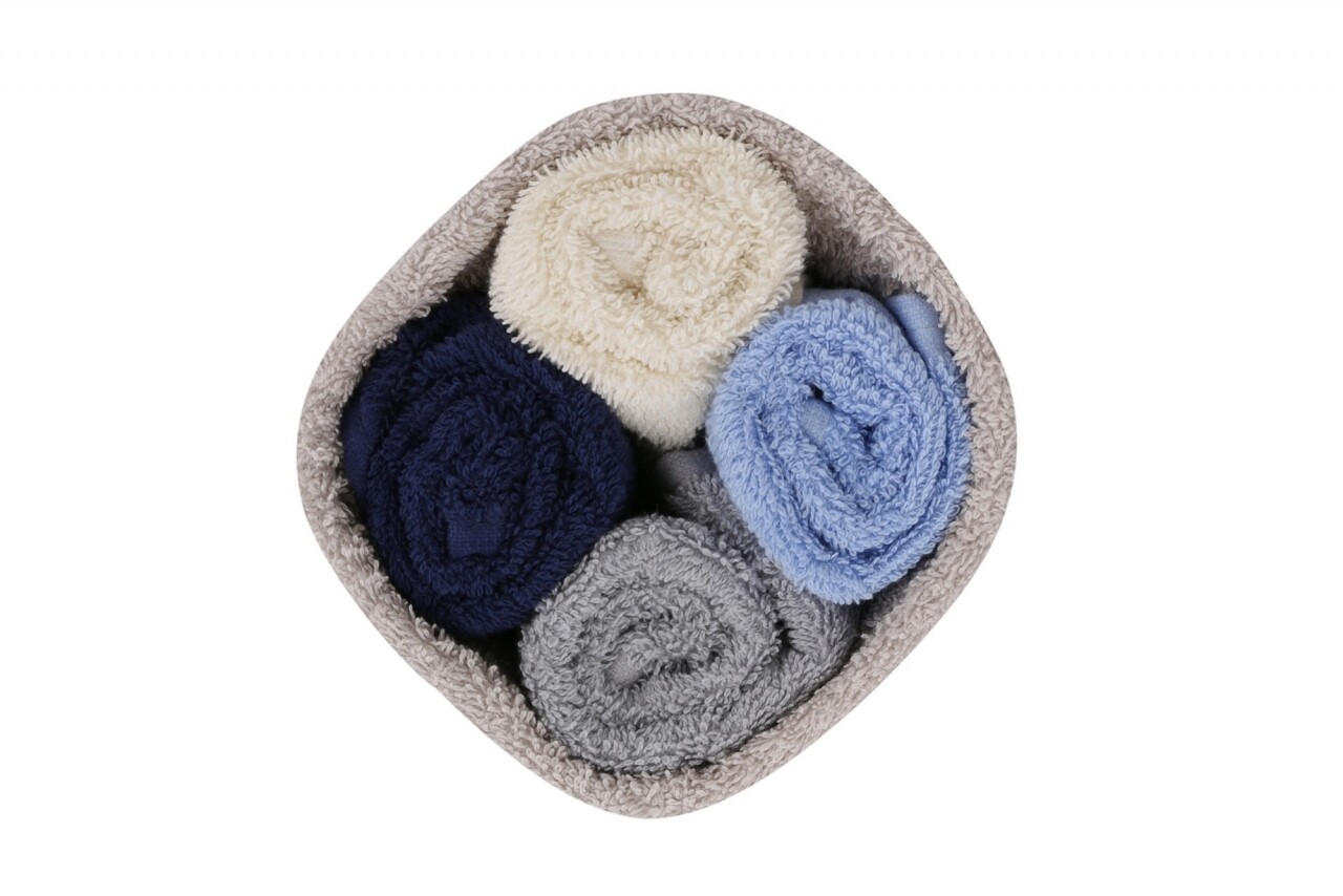 Set 4 prosoape de baie cu cos maro, Beverly Hills Polo Club, 30x30 cm, 100% bumbac, albastru/gri/alb/albastru inchis