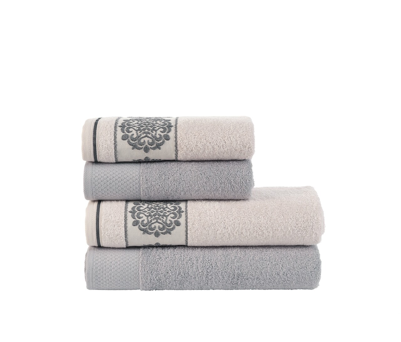 Set 4 prosoape de baie HT, Class, 100% bumbac, gri