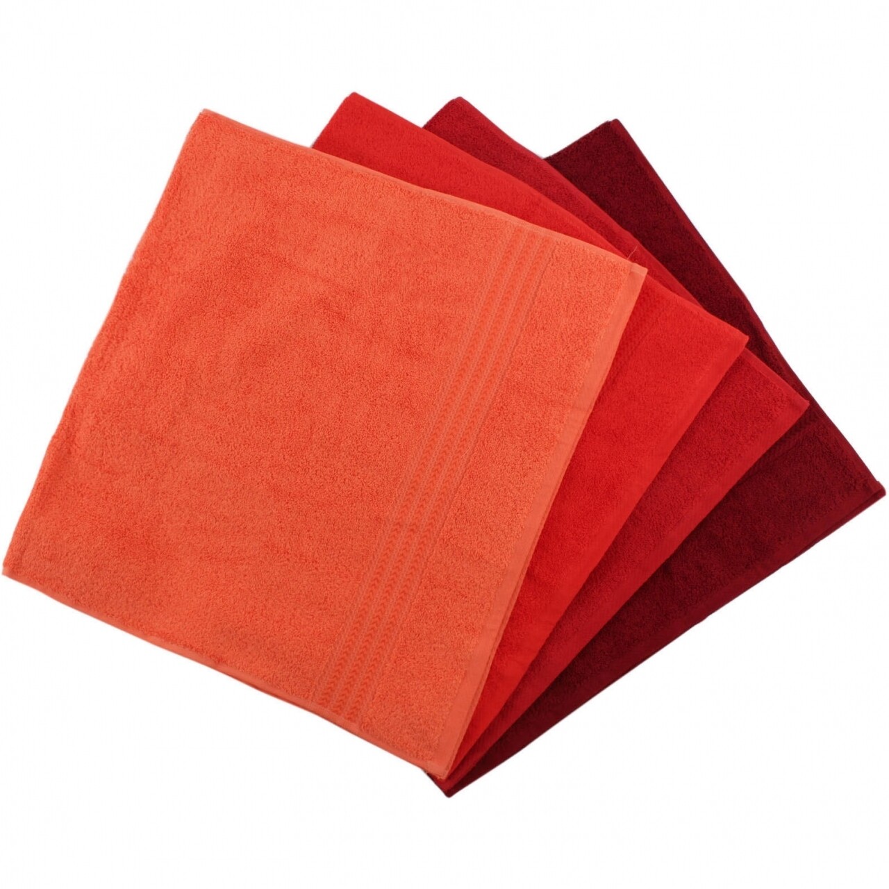 Setul de 4 prosoape prezinta culori in degrade, de la rosu inchis la rosu mai deschis si are un ambalaj elegant. De aceea, poate fi si un cadou inspirat de casa noua.