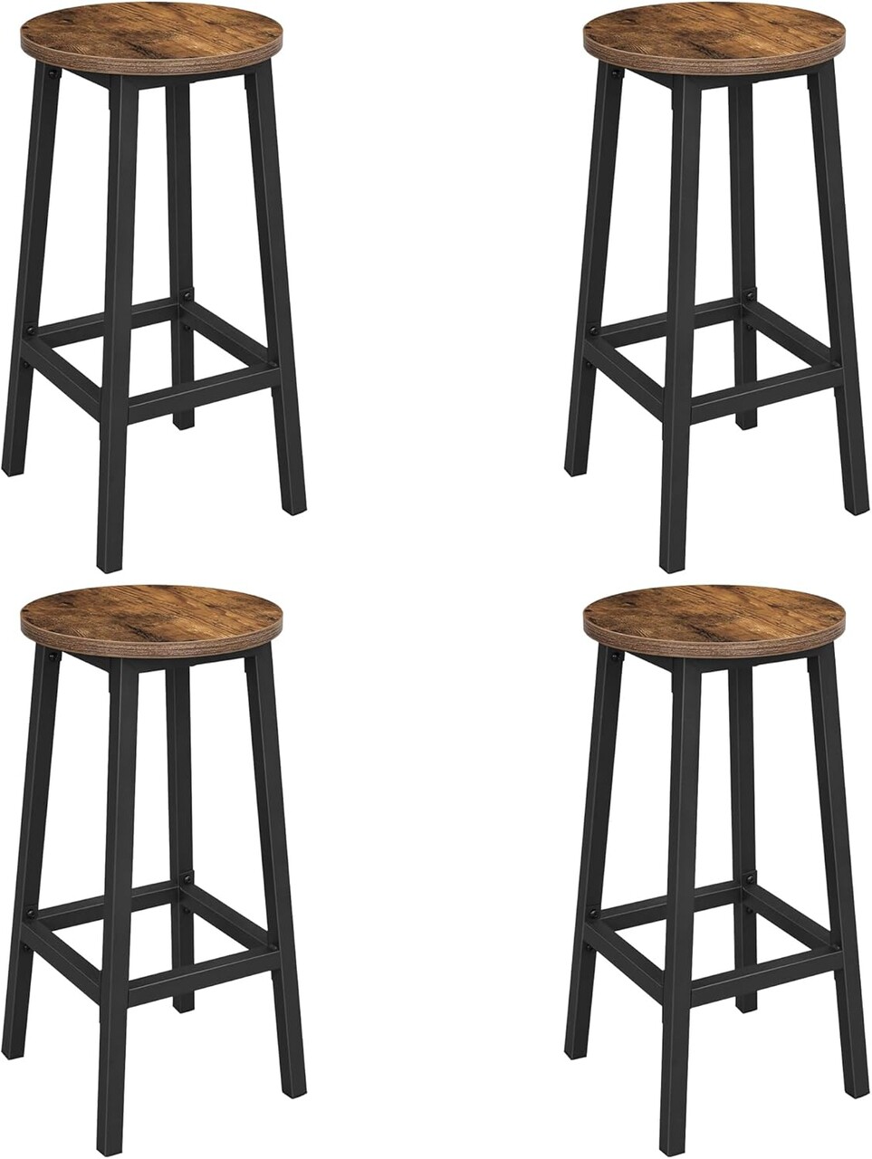 Set 4 scaune de bar, Vasagle, Industrial Design, 30x65 cm, max 150 kg, PAL/otel, maro