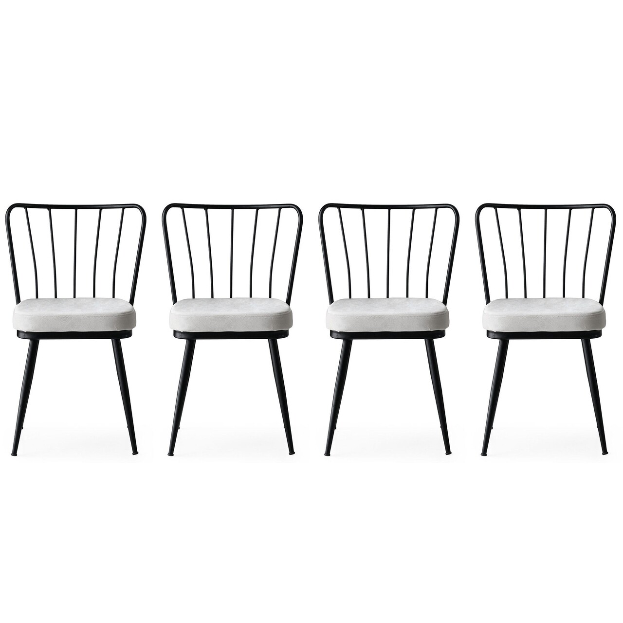 Set 4 scaune, Nmobb, Yildiz 186, 43 x 82 x 42 cm, metal/pal, negru/alb