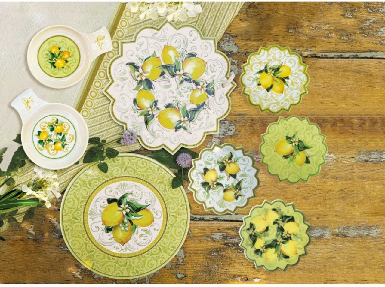 Proaspata, eleganta, delicata: colectia Limoni reflecta peisajele mediteraneene, unde natura vesnic verde se combina cu florile si fructele pentru a crea un paradis de parfumuri si nuante. Decor elegant si culori stralucitoare combinate intr-un set de articole de masa si de uz casnic concepute pentru a regenera mintea si spiritul.