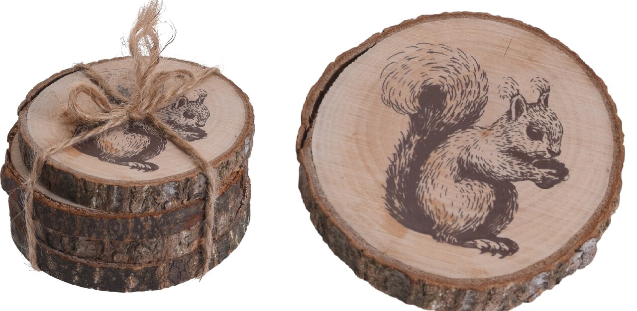 Set 4 suporturi pentru pahare Squirrel, 8x11.5 cm, lemn, maro
