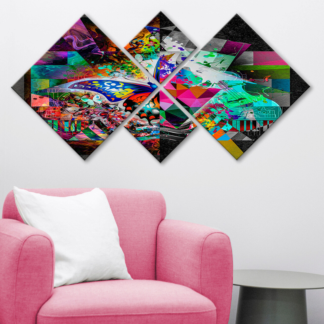 Set 4 tablouri decorative, 4MDF86755856, MDF, Imprimat UV, Multicolor