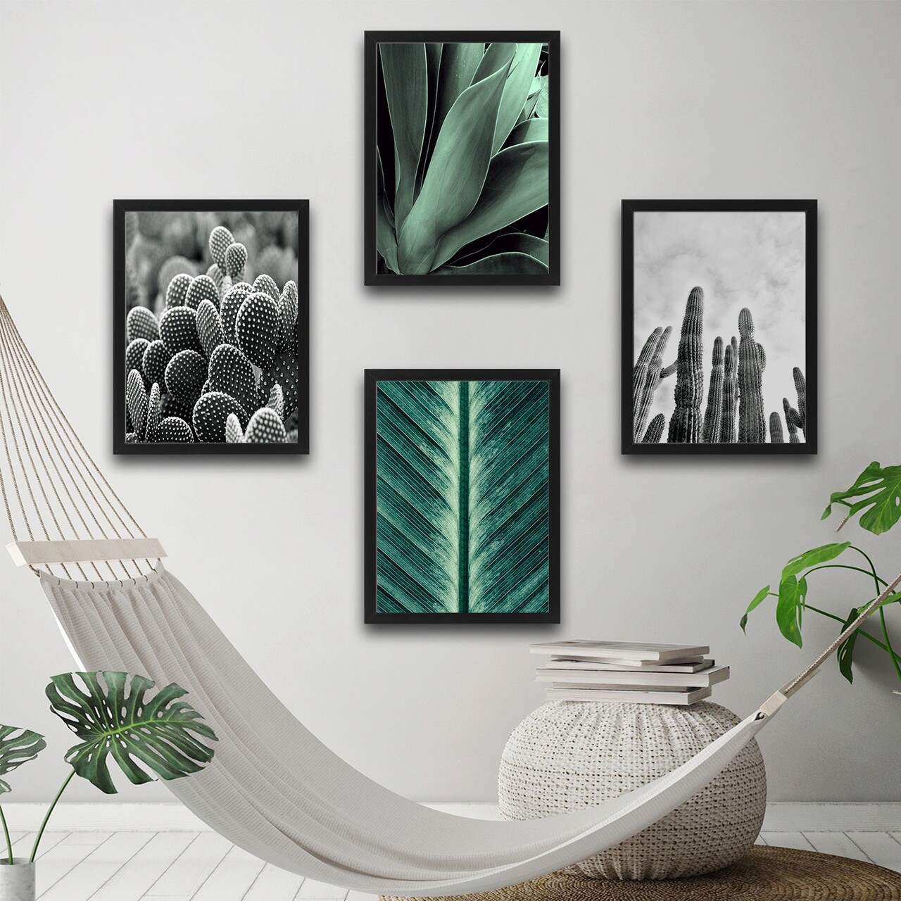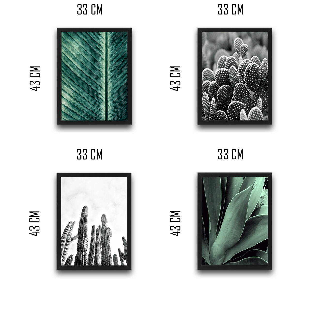 Set 4 tablouri decorative, Green & Cactus Set, PAL, Hartie, Multicolor