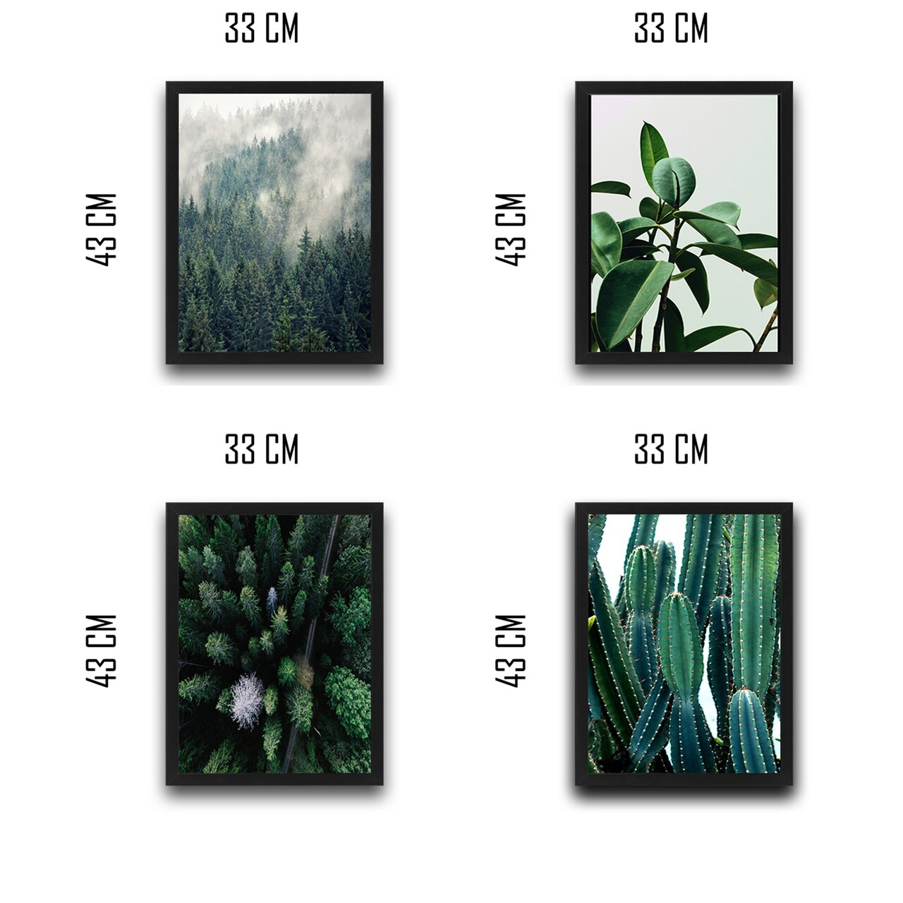 Set 4 tablouri decorative, Green Cactus Set, PAL, Hartie, Multicolor