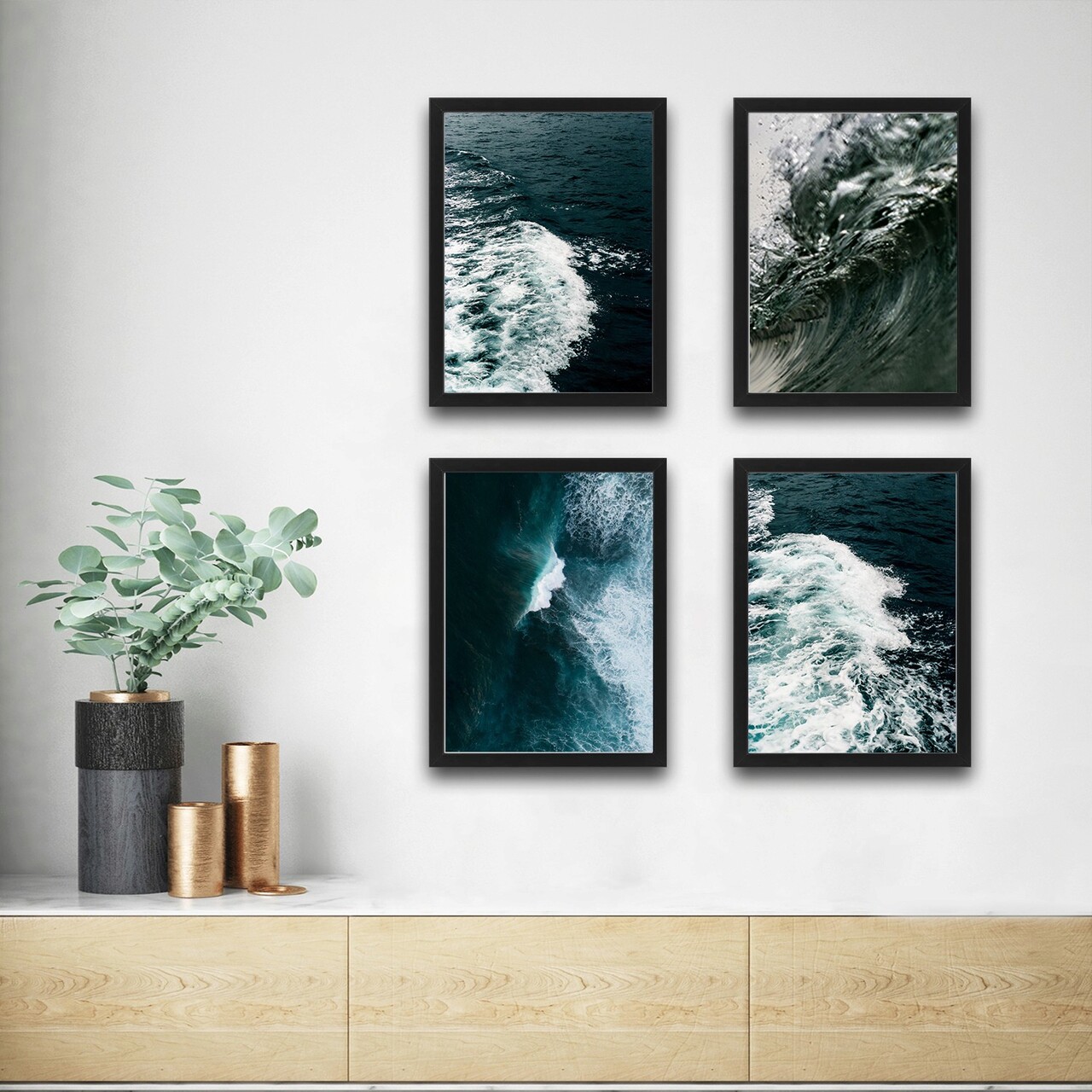 Set 4 tablouri decorative, Waves Set 2, PAL, Hartie, Multicolor