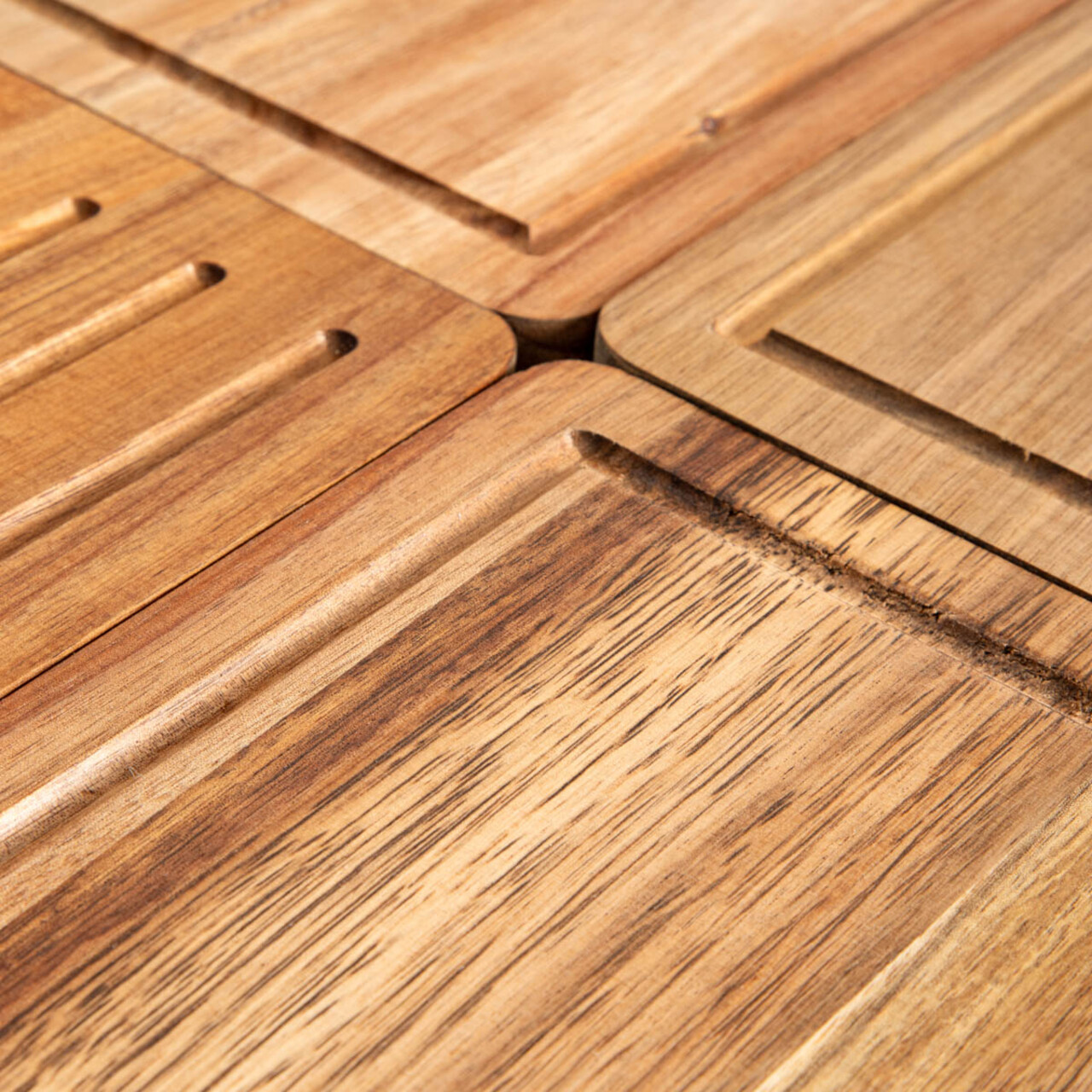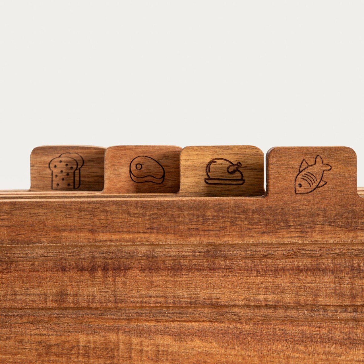 Setul de tocatoare MOOKA este o solutie functionala si eleganta pentru orice bucatarie. Fabricate din lemn de salcam durabil, acestea se disting prin textura naturala si nuanta calda care confera un aspect confortabil interiorului. Marcajele de pe partea superioara a tocatoarelor faciliteaza alocarea acestora pentru produse specifice, ceea ce promoveaza igiena in timpul prepararii meselor.