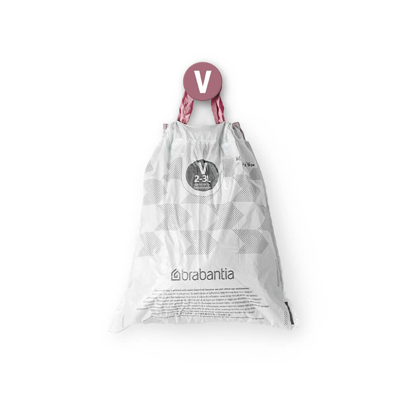 Set 40 saci de gunoi, Brabantia, NewIcon PerfectFit, marimea V, 3 L, nailon, alb
