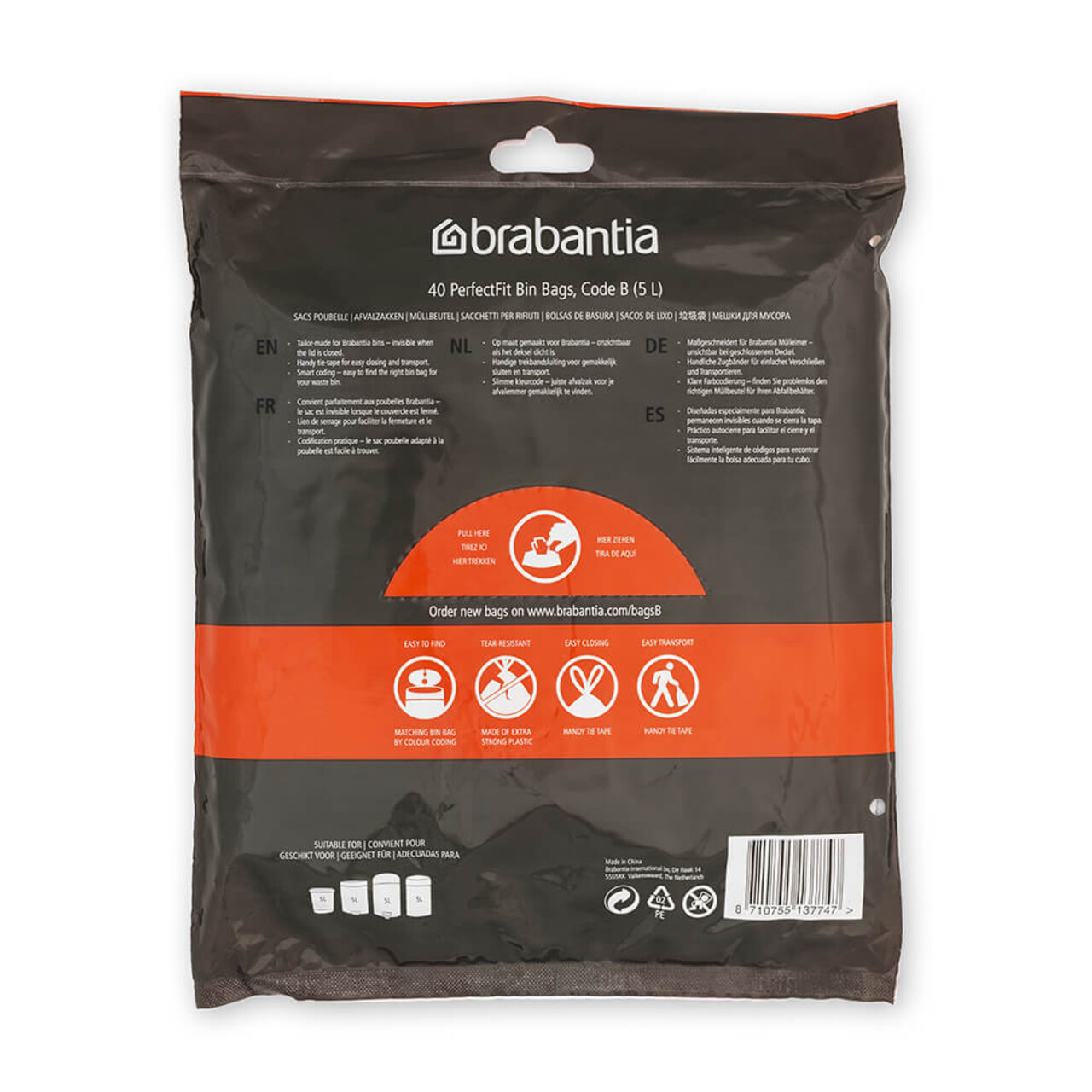 Set 40 saci de gunoi, Brabantia, PerfectFit, marimea B, 5 L, nailon, alb